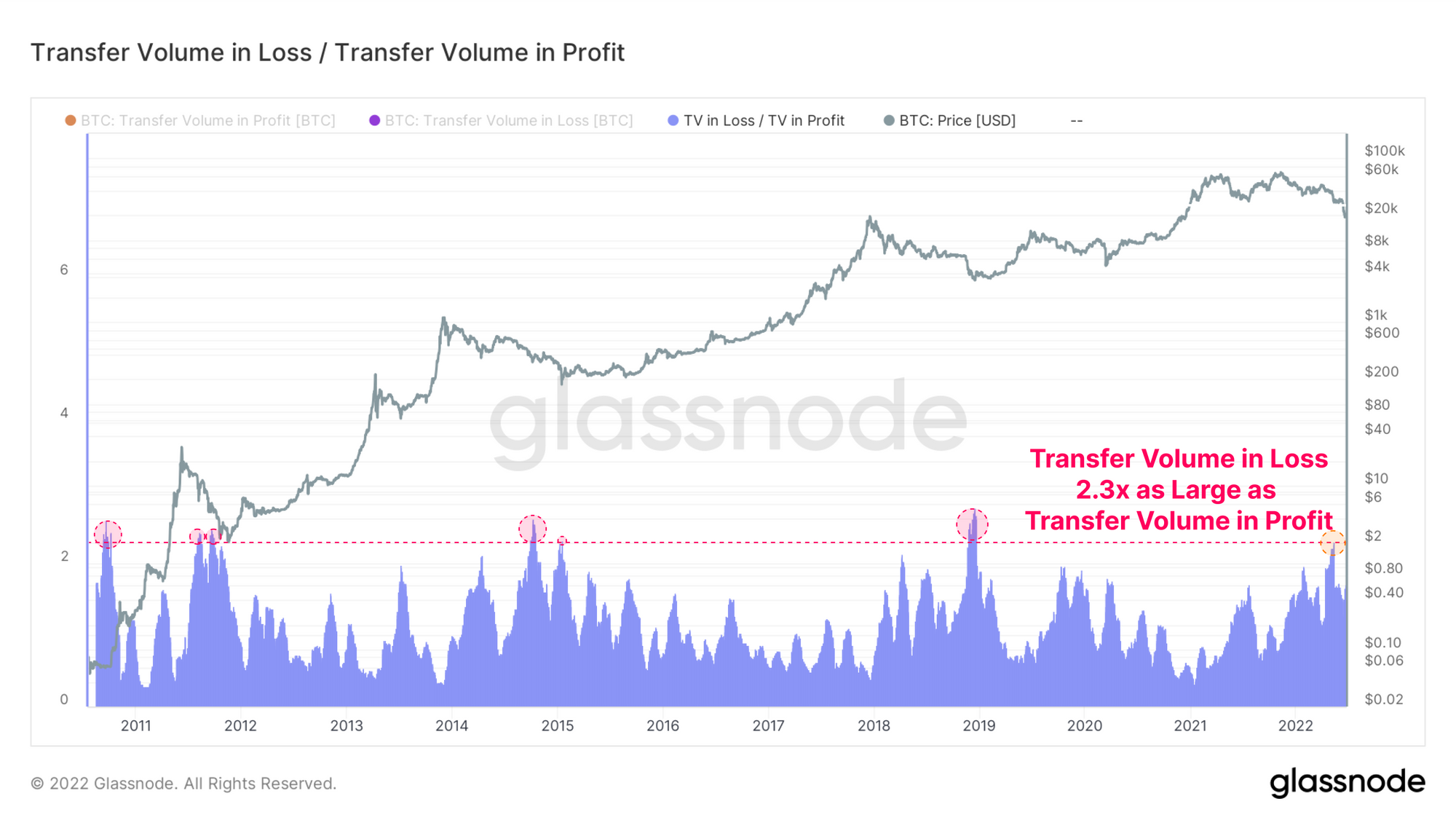 - The ratio between Transfer Volume in Loss vs Profit has reached historically high levels, synonymous with a deeply distressed investor base.