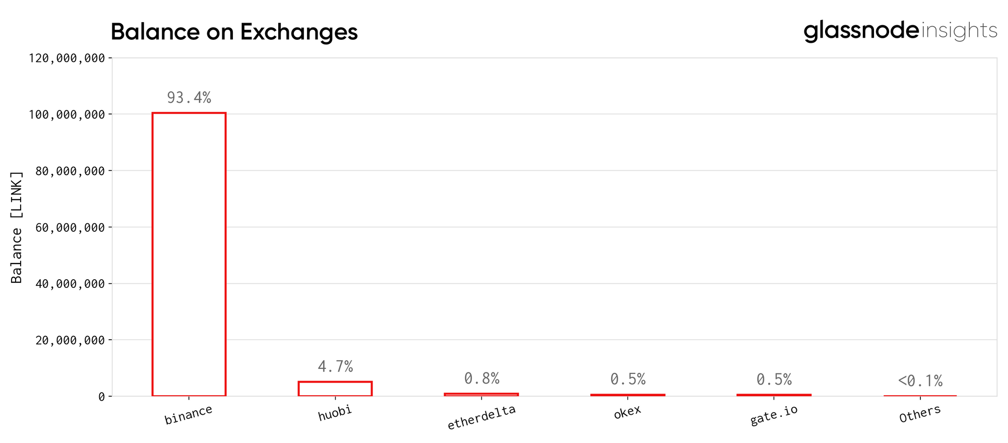 Across the different exchanges, Binance has the largest market share by a considerable margin with 93.4% of tokens being stored in their wallets. This is unsurprising given how high LINK’s daily trading volume is on the exchange.