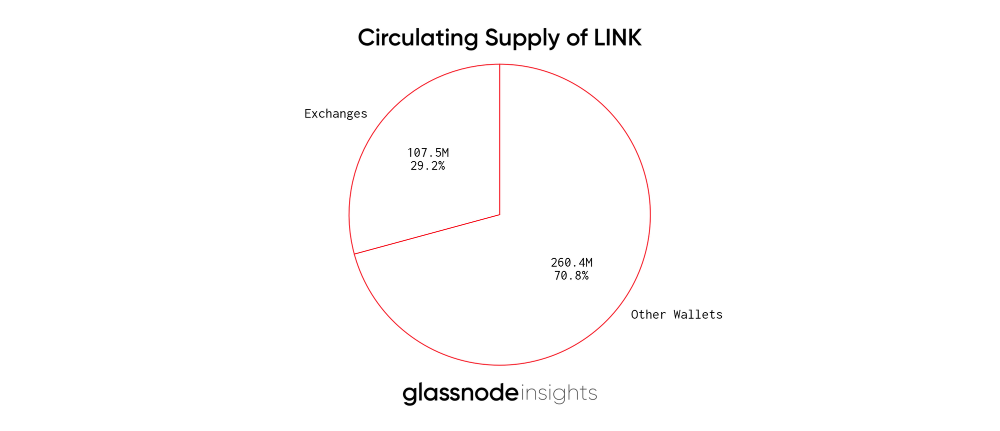 Compared to other ERC20 tokens on the market, LINK has a comparatively low number of tokens stored in exchange wallets at only 10.7% of the total supply and 29.2% of the circulating supply.