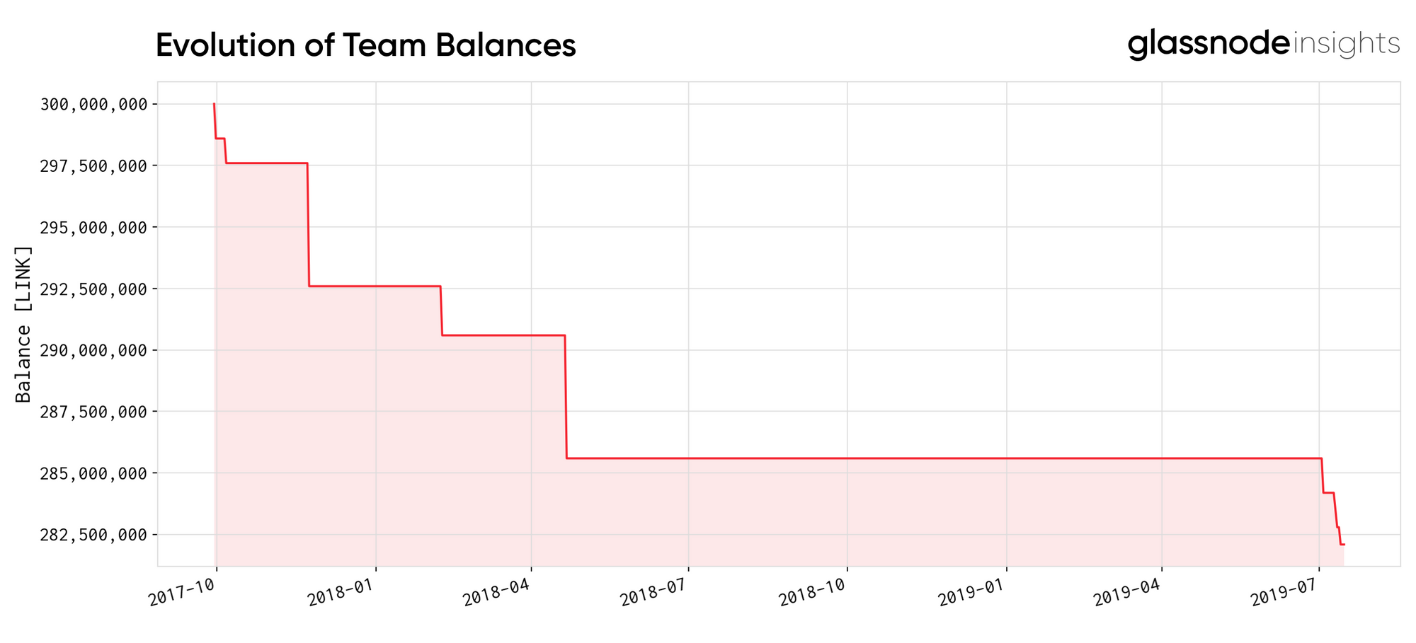 Below is a graph showing the balance of the team reserve over time. Each address was sent 50,000,000 LINK when the token was initially distributed.