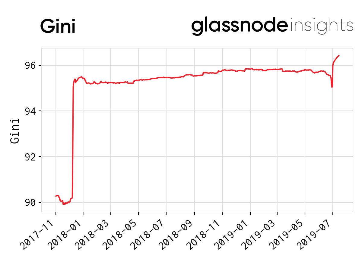 It should be noted that this is not an uncommon distribution, we’ve observed that many ERC20 tokens are very similar when looking at network participant holdings. For example, in our previous analysis, we saw that 94% of BAT was held by the top 5% of addresses.