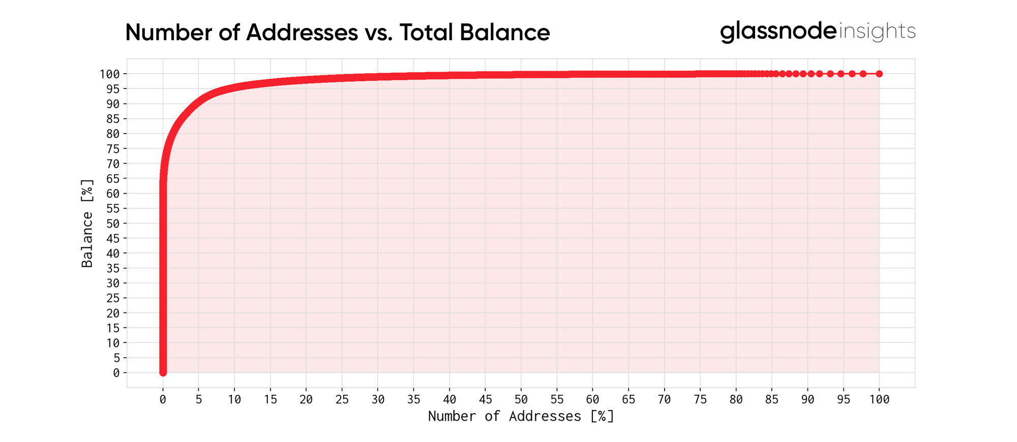 This plot reveals the wealth concentration in the LINK ecosystem, with the curve increasing rapidly to almost 70% of the supply and quickly saturating at around 25% of addresses.