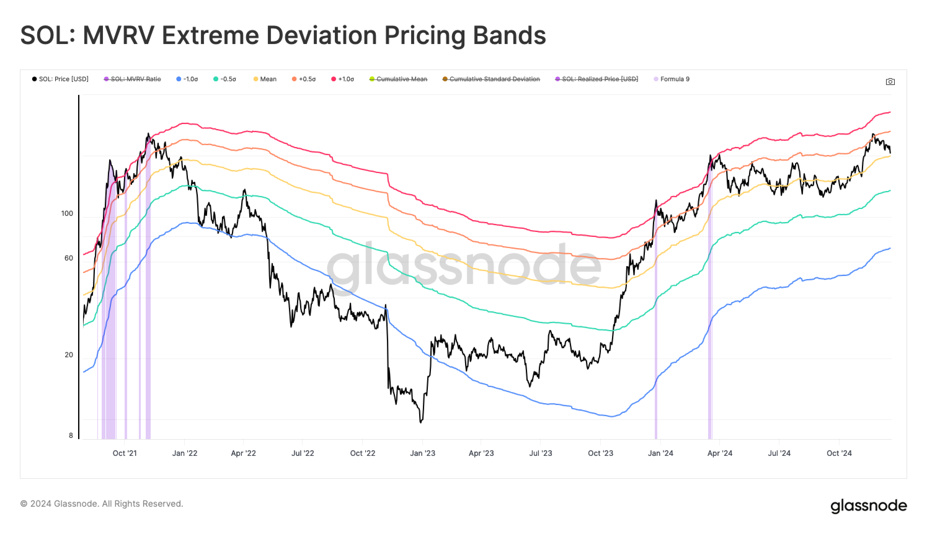 Presently, the SOL price is consolidating between the mean and +0.5 standard deviation range. This suggests the market is relatively heated, but also suggests the potential for further room to run before the profit held by the average investor reaches its extreme band of +1σ, enticing a flurry of profit taking and distribution.