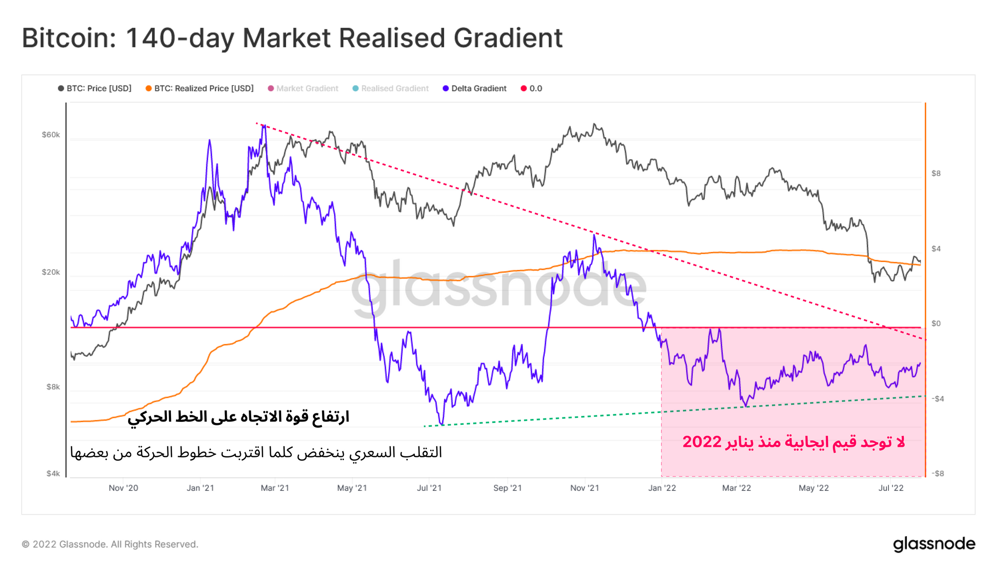في ظروف السوق الحالية ، شهد مستثمرين طويلي الأمد انحرافًا في ربحيتهم الأخيرة بشكل كبير عن أدائهم السنوي، لما يقرب من 400 يوم متتالي. وصل الانخفاض إلى مدة وعمق مماثلين لانخفاضات السوق الهابطة لعام 2018، ويوفر وزنًا إضافيًا للحجج المذكورة أعلاه.