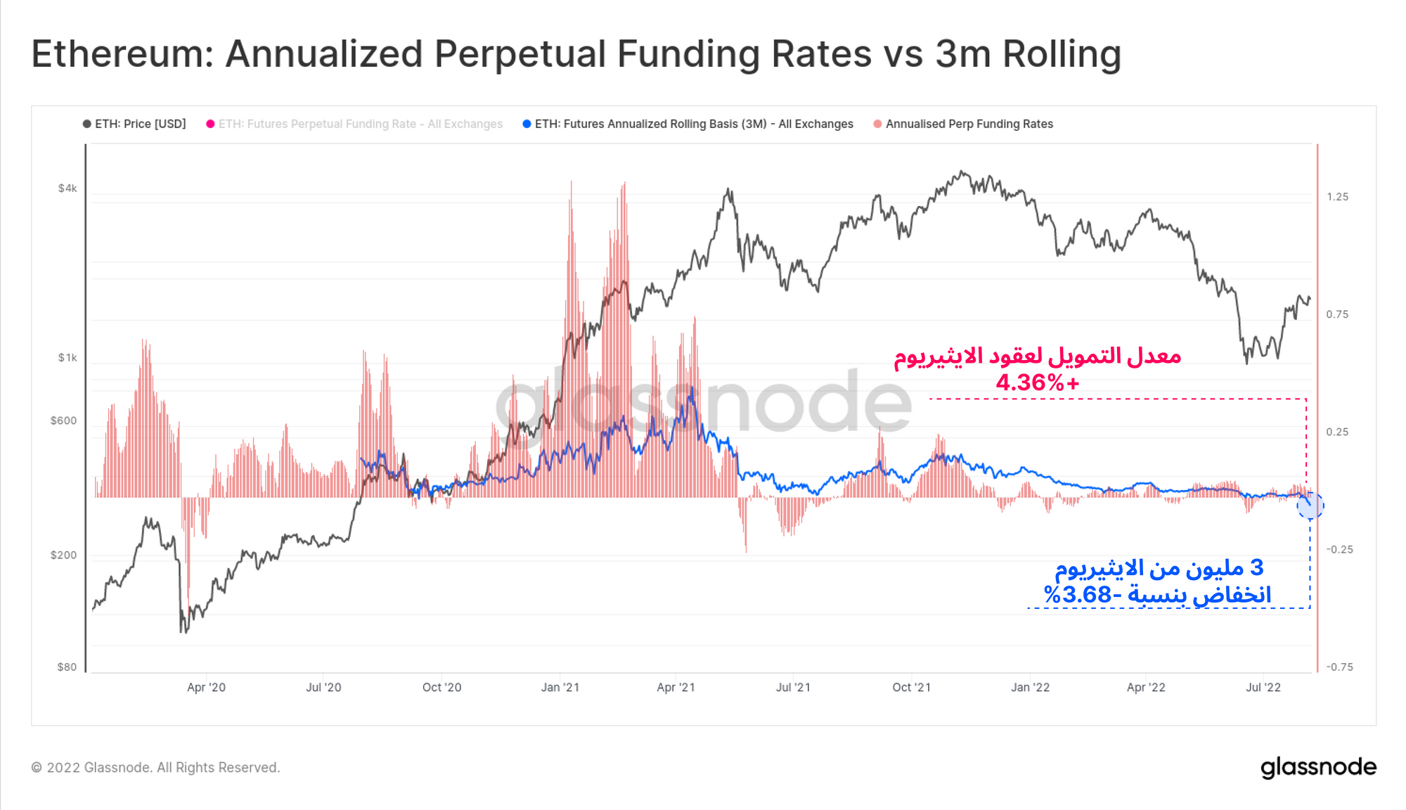 أخيرا نرى أن الطلب علي العقود الأجلة قصيرة المدى علي أساس ثلاث أشهر يظهر لنا كتكلفة سلبية تصل إلي -3.68% سنويا. هذا يؤكد على أن المتداولين على إستعداد لدفع مبالغ في سبيل التحوط " الحماية" من نزول السعر. مع التركيز على عملية الإندماج " إندماج الإيثيريوم" وإستغلاله للمضاربة في حالة إرتفاع السعر تطبيقا لمقولة إشتر الإشاعة وبيع الخبر.