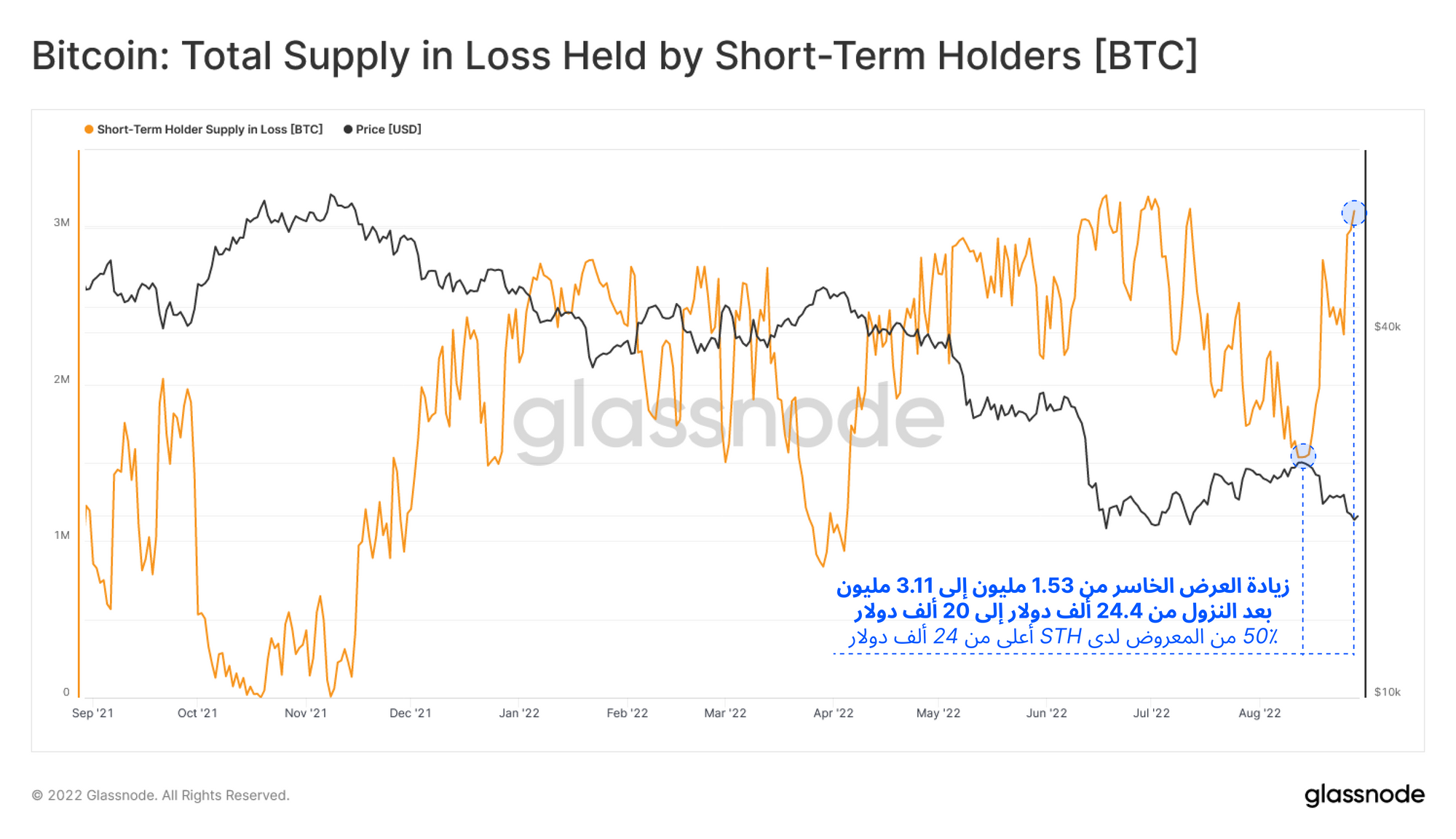 ومع ذلك ، في أعقاب الانخفاض الأخير في السعر ، فإن غالبية المعروض لدى الـ STH يعاني الآن من خسارة غير محققة ، مما أدى إلى دفع هذه المجموعة إلى درجة شديدة من الضغوط المالية.