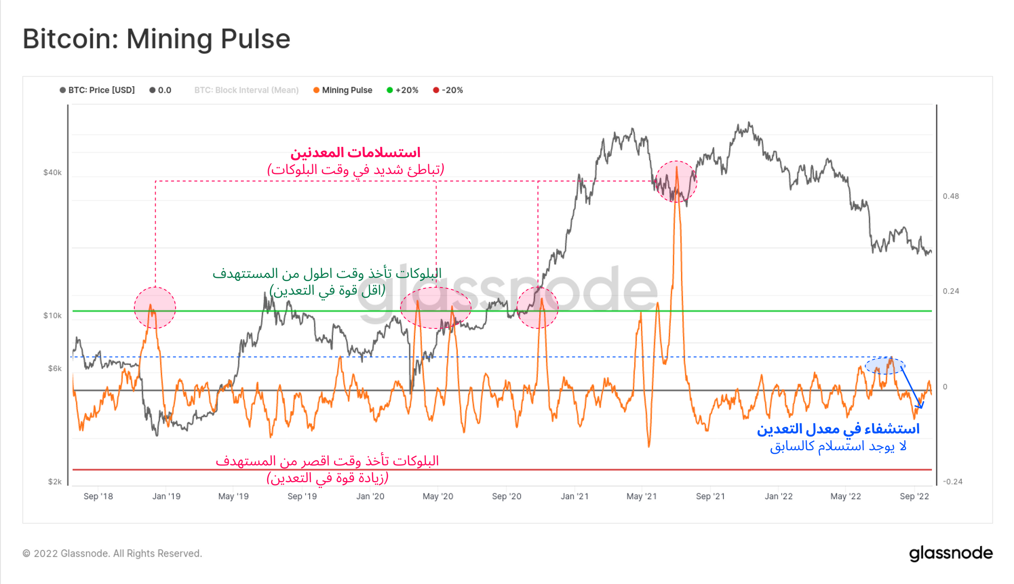 تعتبر أداة نبض التعدين مهمة لمراقبة نشاط المعدنين حيث يقيس متوسط فترة إنشاء الكتلة الواحدة " البلوك" وهو 600 ثانية .