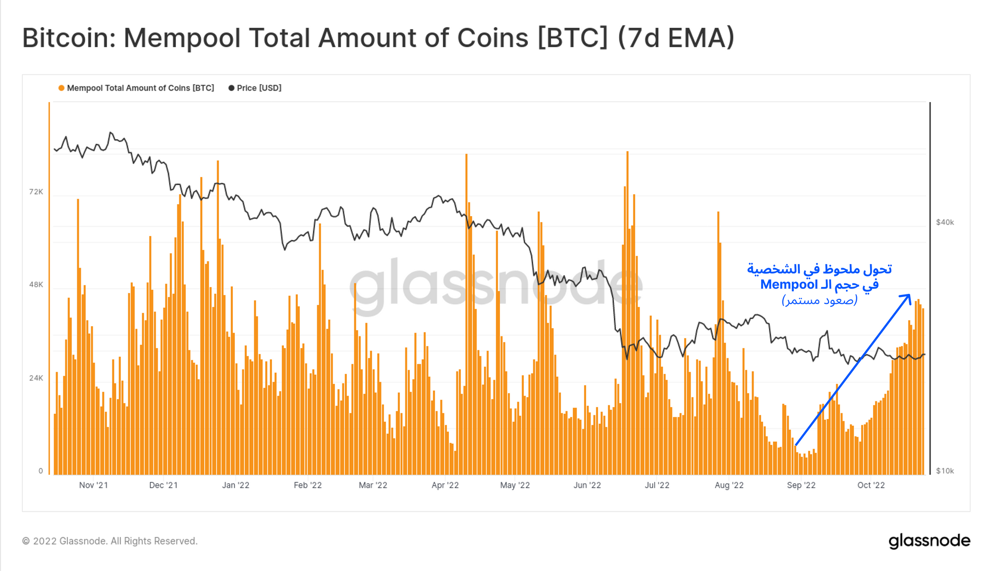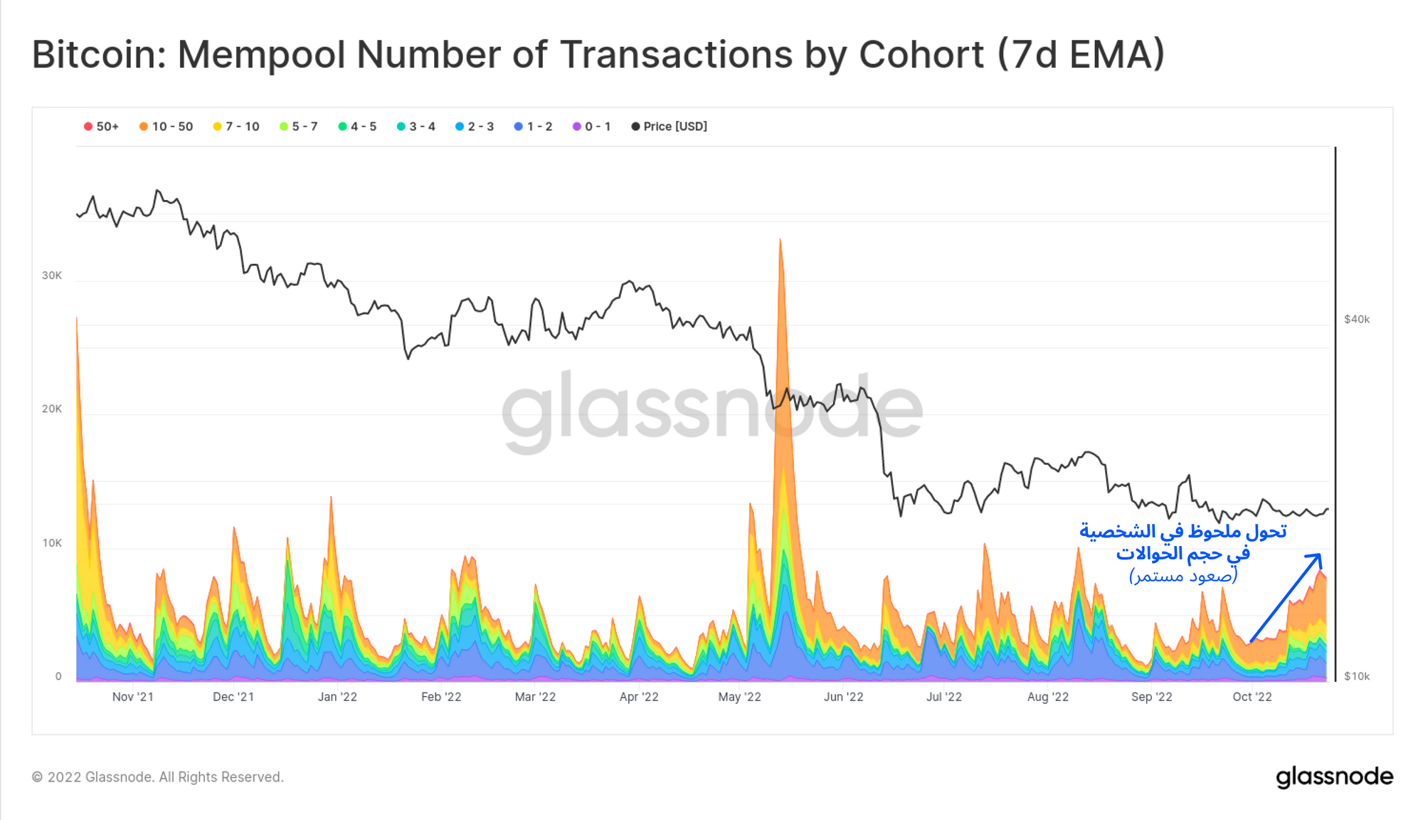 من الجدير بالذكر بأن هناك تغييرا حديثا يمكن ملاحظته في mempool بأن شهد عمليات التحويل بين النودات إرتفاعا مستمرا منذ شهر سبتمبر 2022 لغاية الآن .