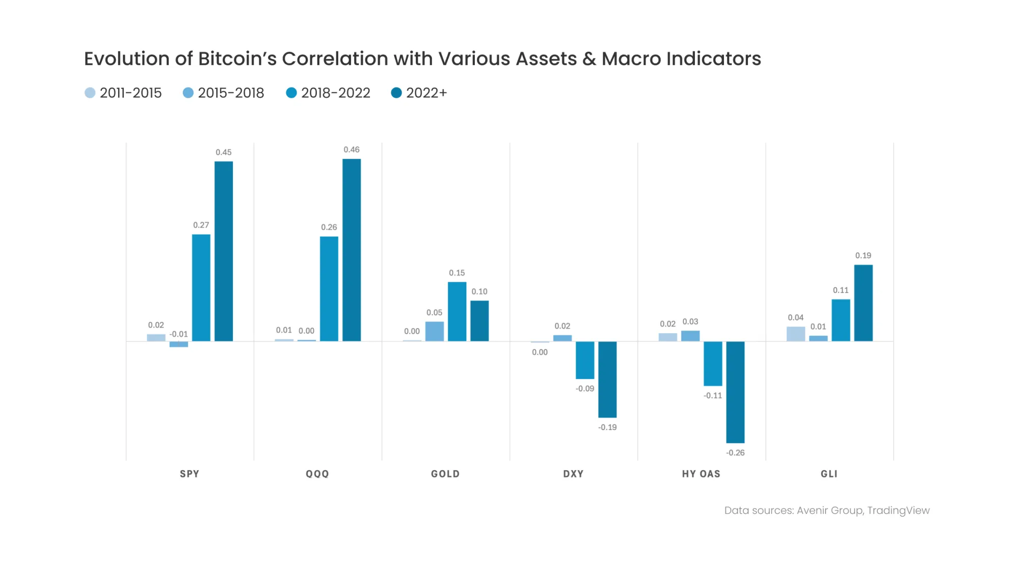 Bitcoin's behavior in 2025 shows increasing alignment with macroeconomic variables. Correlation and beta analysis in the report demonstrates that Bitcoin now exhibits: