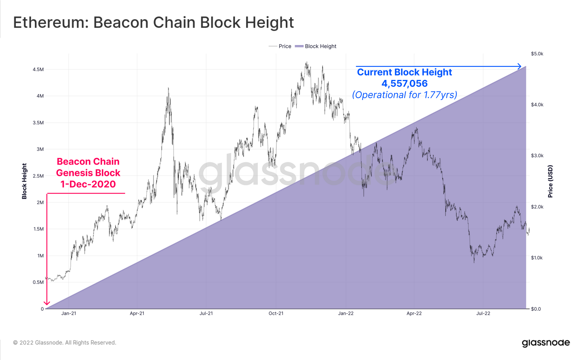 The Merge has been formally scheduled to take place at a Total Terminal Difficulty of 58.75e21, which is estimated to be on the 15-September-2022. With the Merge date just days away, this report will introduce a suite of new metrics to help understand the Ethereum Proof-of-Stake system, and will profile the performance of the Beacon Chain since the genesis block on 1-Dec-2020.
