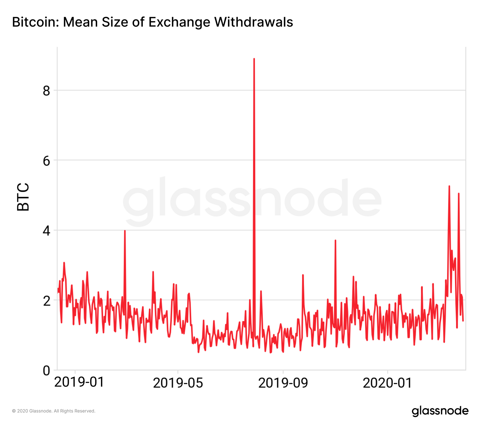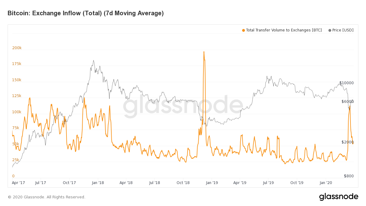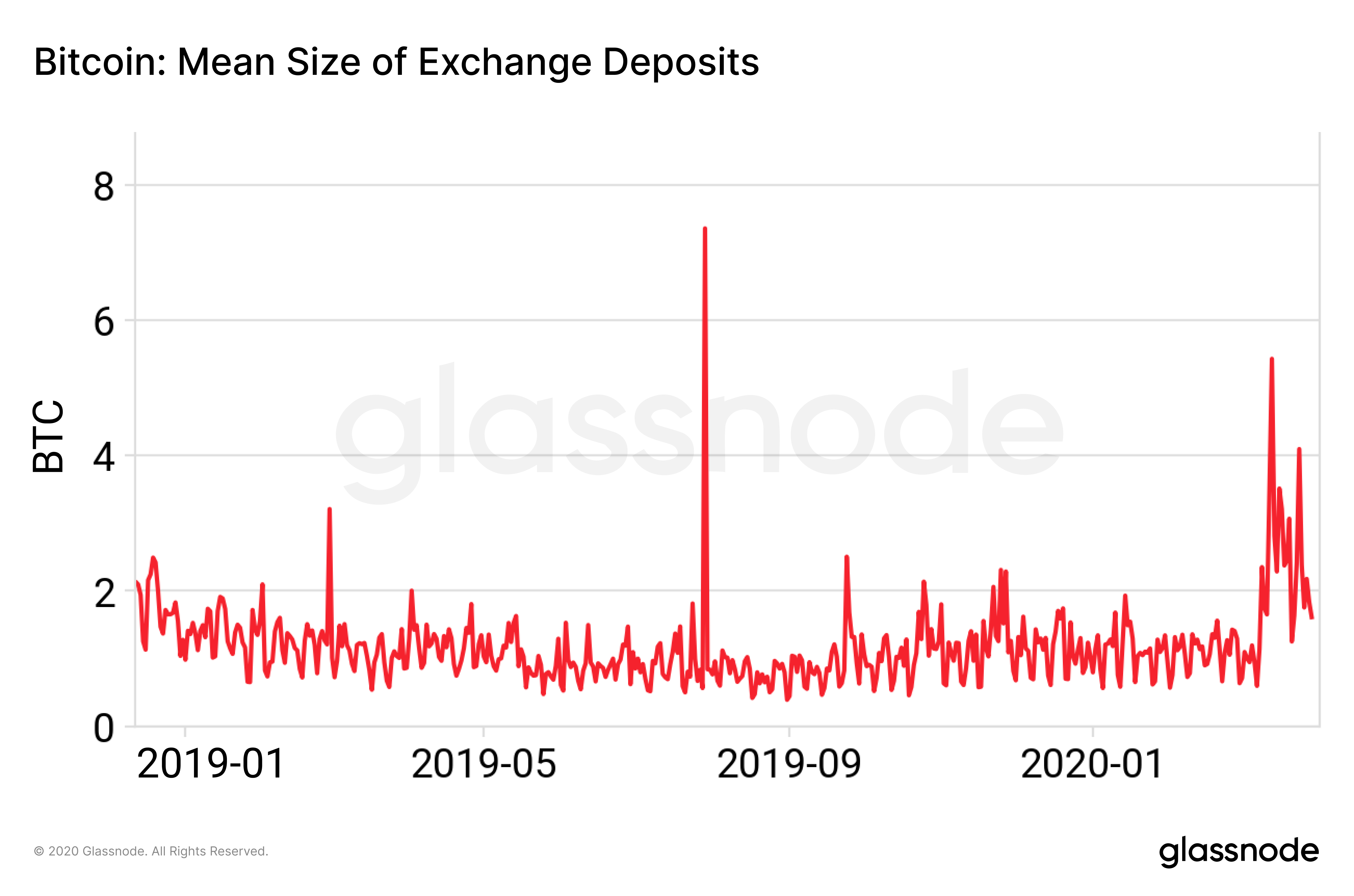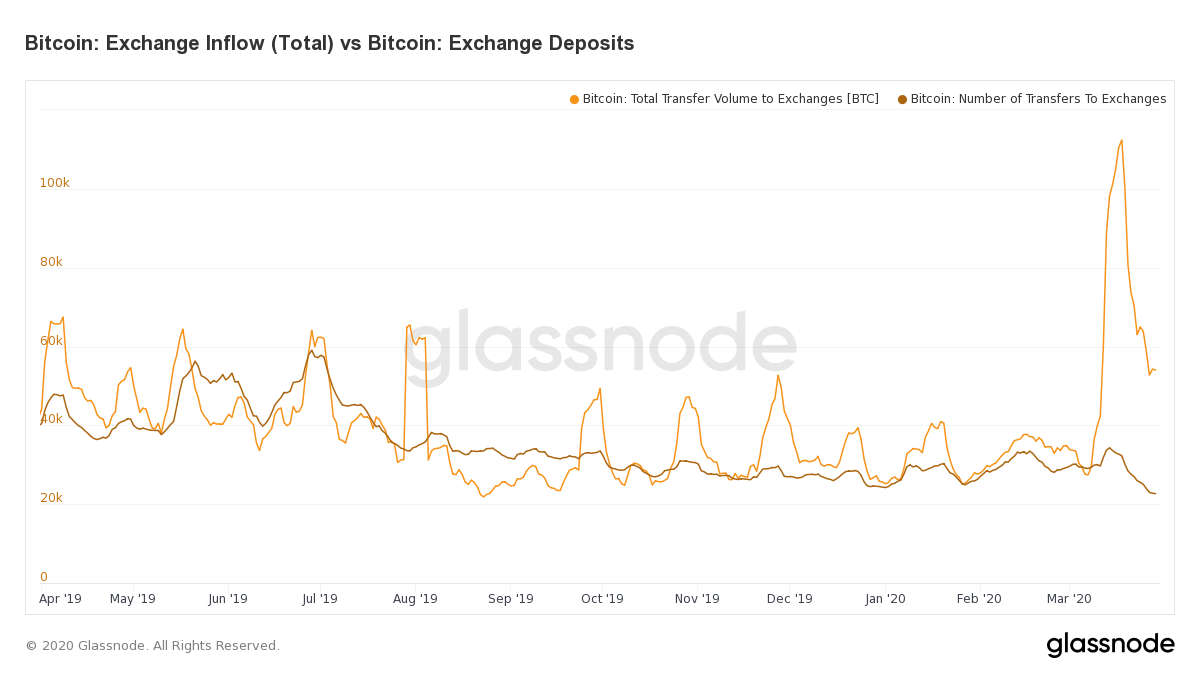 This means that the average size of BTC deposits to exchanges is far higher than usual. This has been the case since early March 2020.