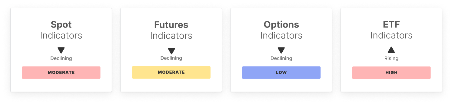 Overall, conditions point to a market at risk of near-term profit-taking. While macro sentiment remains constructive, the cooling of speculative momentum in spot and derivatives markets, combined with rising unrealized gains, suggests increased sensitivity to any downside catalysts.