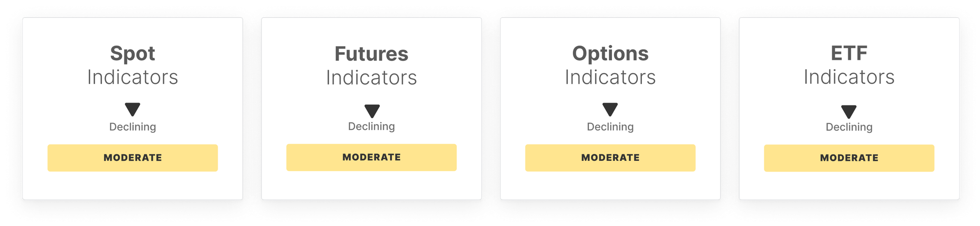 Options markets showed a mild rise in the 25-Delta Skew, pointing to demand for downside protection, while volatility spreads remained steady. Options open interest fell following a large expiration, reflecting a reset in positioning but still maintaining historically strong engagement.