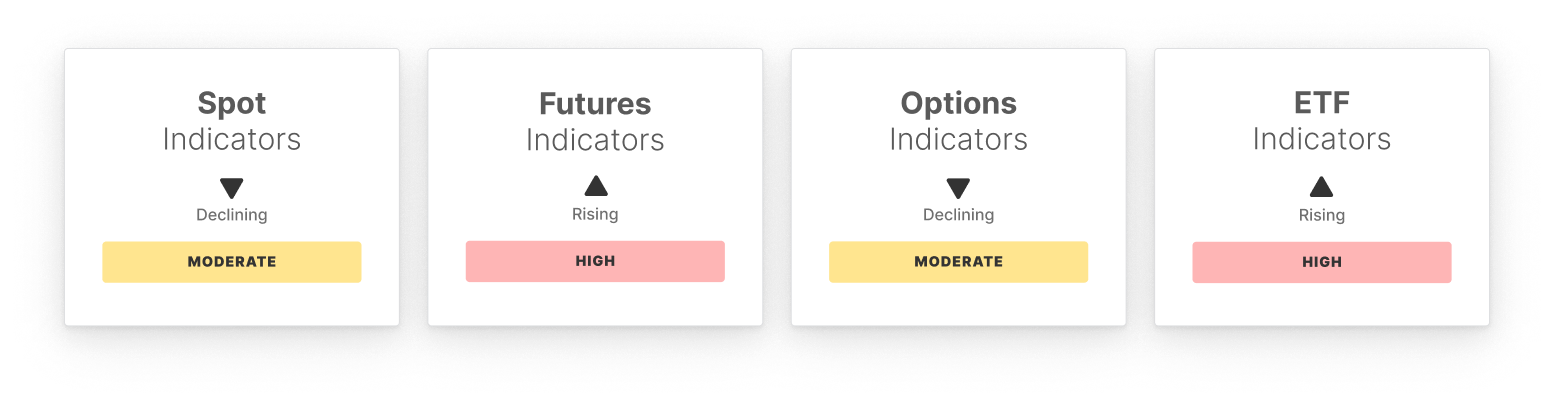 In the spot market, RSI surged into overbought territory, while CVD weakened and volumes held flat, reflecting strong momentum but limited conviction as sellers pressed into strength.