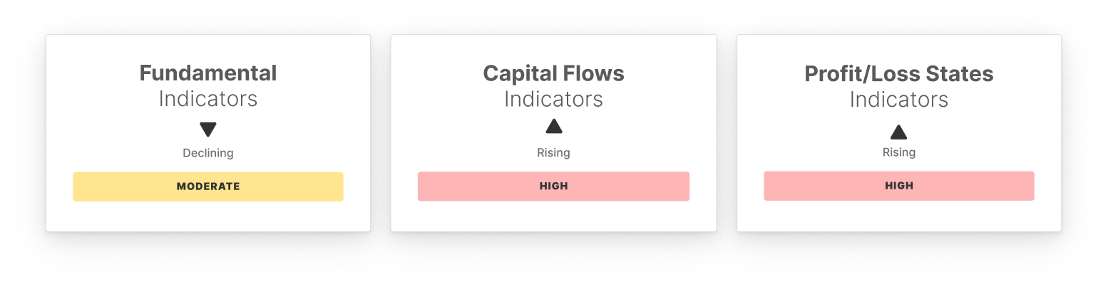 Profitability metrics improved, with supply in profit, NUPL, and realized P/L all rising. This highlights broad investor profitability and stronger sentiment, though elevated profit realization raises the risk of demand exhaustion.
