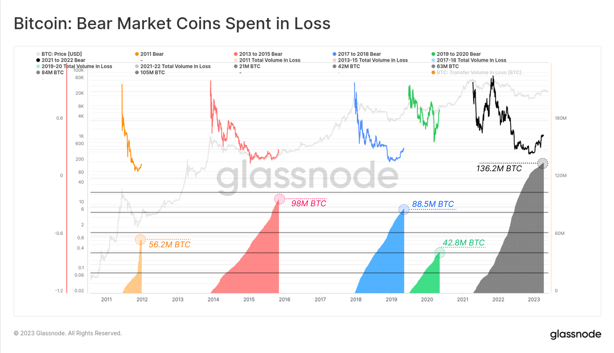 By the time FTX collapsed in Nov 2022, over 123M BTC had transacted at a loss since the April 2021 peak (where we believe bear market sentiment had truly set in).