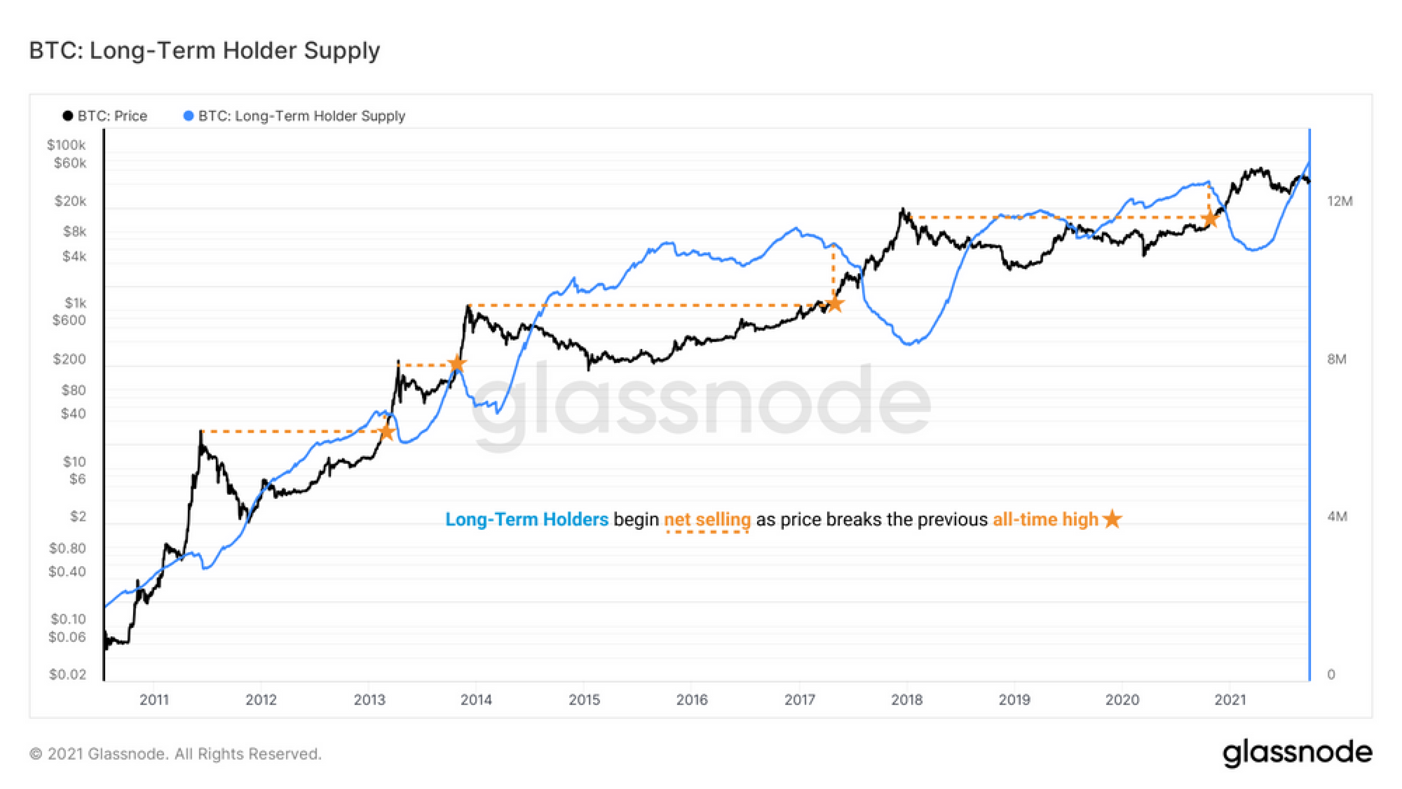 In a previous study, we defined the Long-term Holder (LTH) heuristic, which segments the coin supply into holders that are least likely to spend on any given day. We expanded on this research in Following the Smart Money, where we demonstrated how LTHs generally accumulate BTC at cheap prices in bear markets, and then distribute heavily, particularly in late stage bulls.