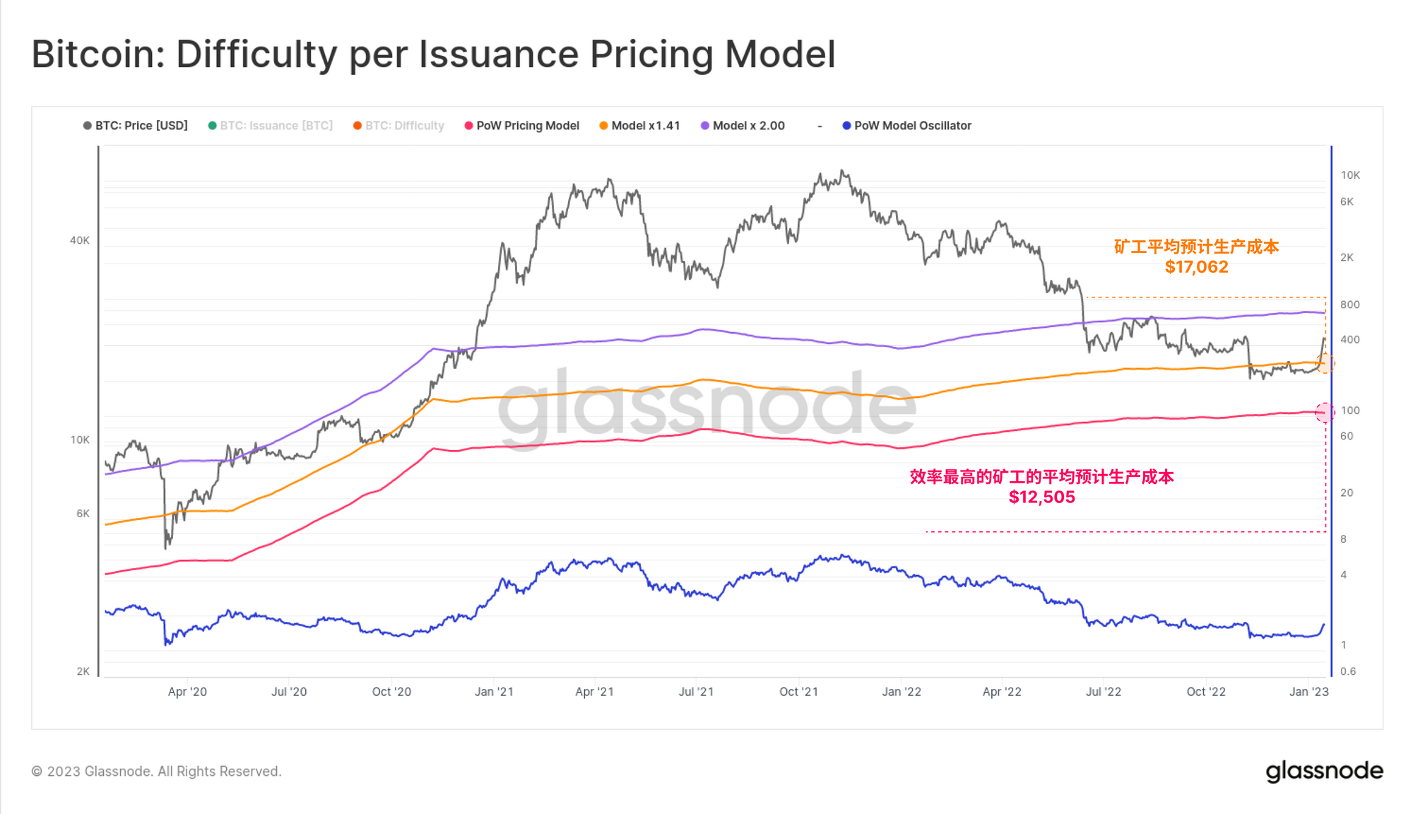 警报想法: 价格跌破1.7万美元 将反映出回落到 两个生产成本模型之下,这可能让挖矿业重新陷入严重的财务压力。