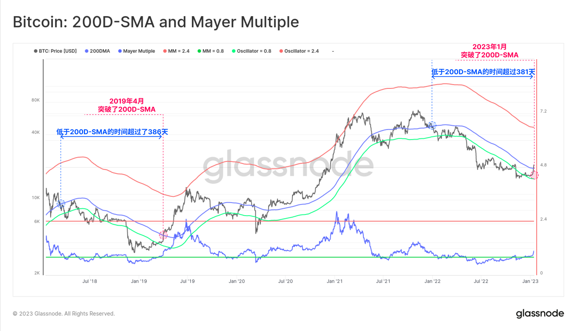 200D-SMA仍然是所有资产类别中最广泛使用的技术分析工具之一,经常被用作测试宏观市场趋势的试金石。多年来,比特币已经证明了这一点,简单检查一下价格是在200D-SMA之上还是之下,往往与宏观看涨或看跌的趋势相关。