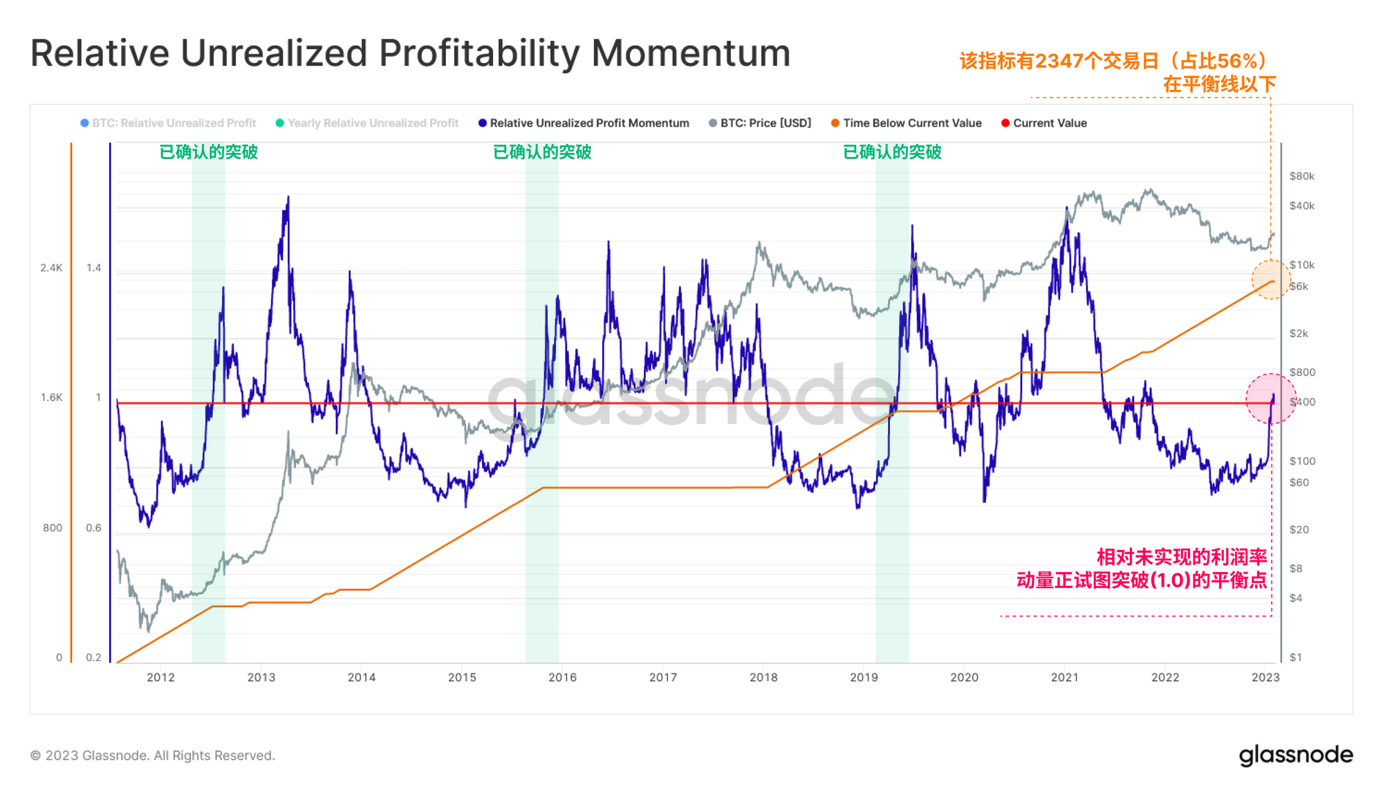 市场持有的未实现利润总额与年度平均值之间的比率,可以做为判断市场是否复苏的一个宏观规模指标。