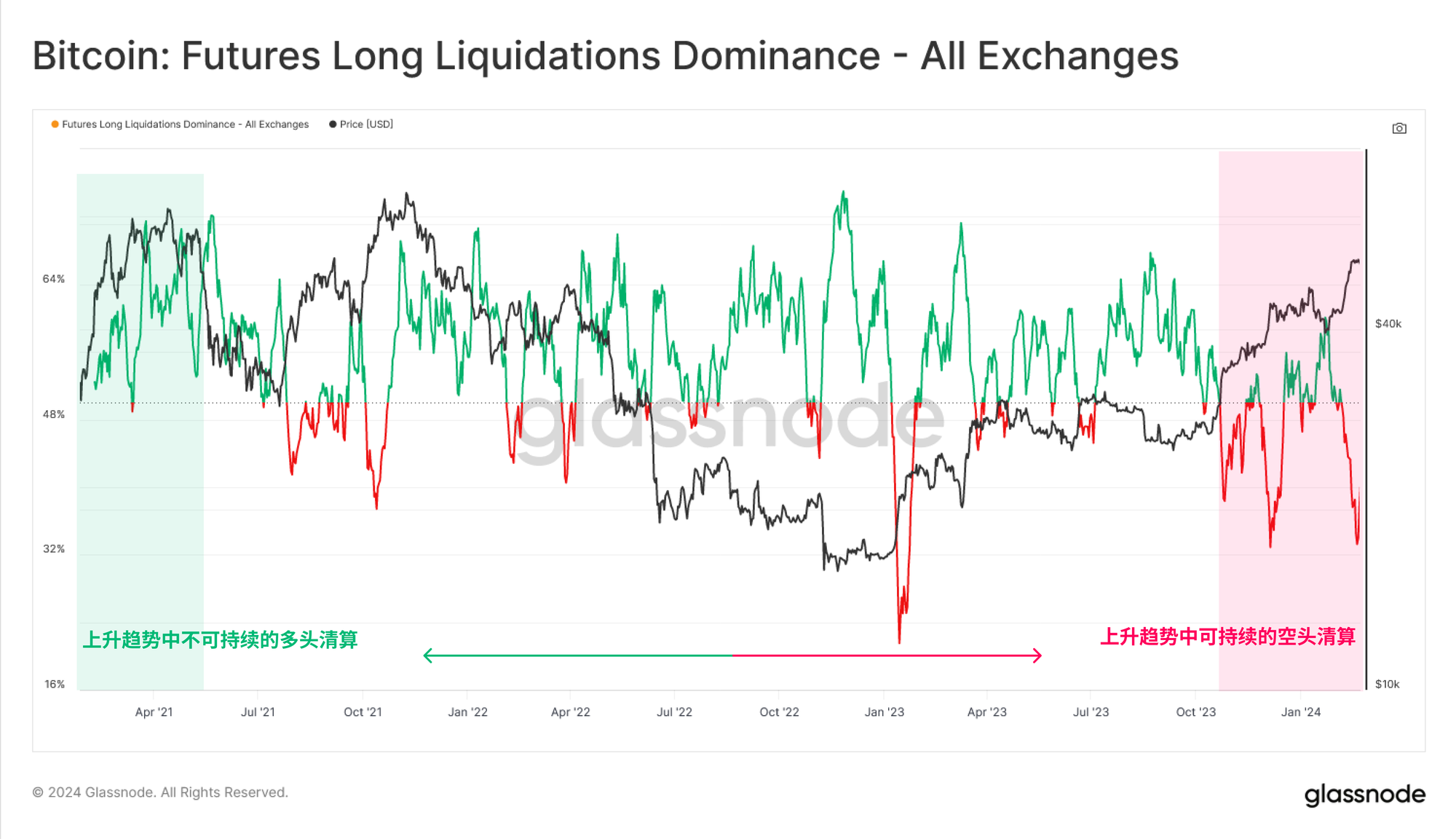 这导致在过去30天内,总的空头清算量大幅增长,超过4.65亿美元的头寸被平仓。下面的图表突出了空头清算超过多头的时期,其中许多与由轧空引发的强劲上升趋势一致。