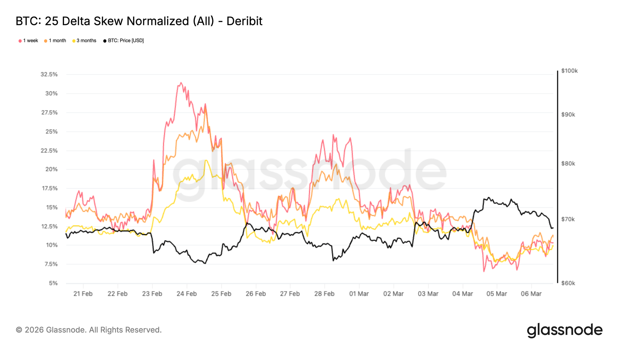 偏斜本质上衡量了对保护的需求相对于参与的需求。当交易员积极对冲下行风险时,看跌期权会比看涨期权贵得多。随着这种失衡的缩小,通常预示着市场对于重新承担方向性风险变得更加从容。