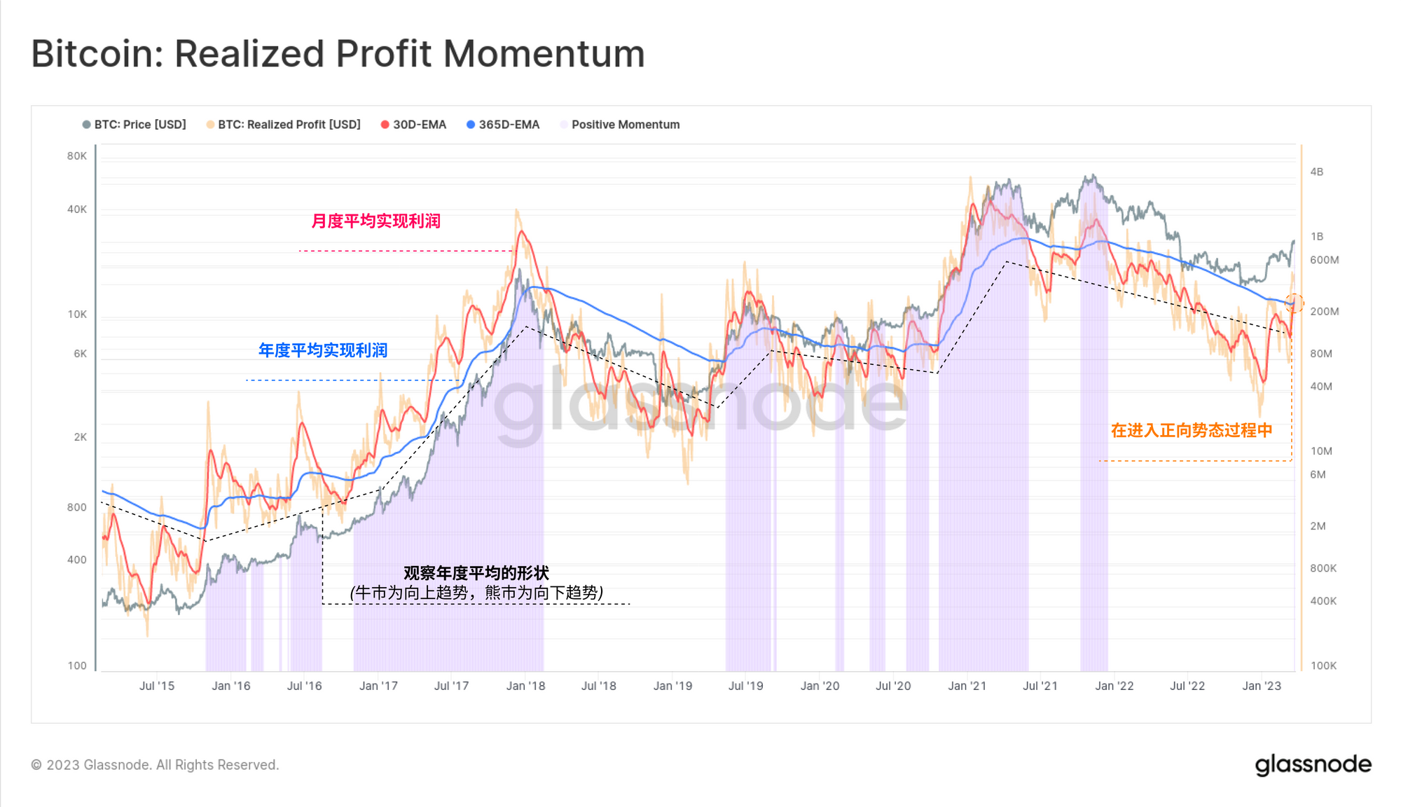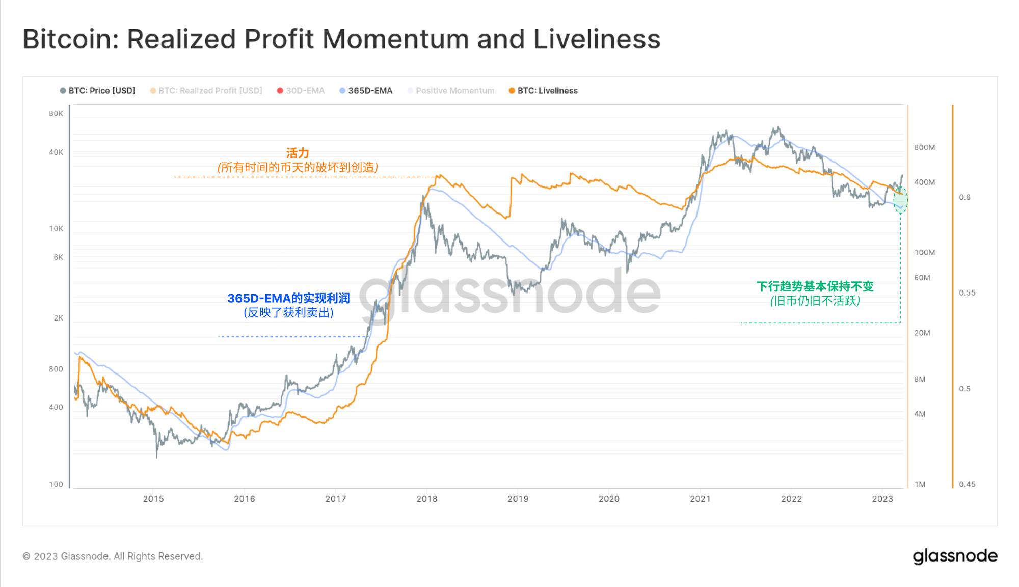 回顾已实现利润的年度平均值的形状,我们可以看到与活力存在非常相似的形状和关系,主要是因为它们描述了类似的市场行为: