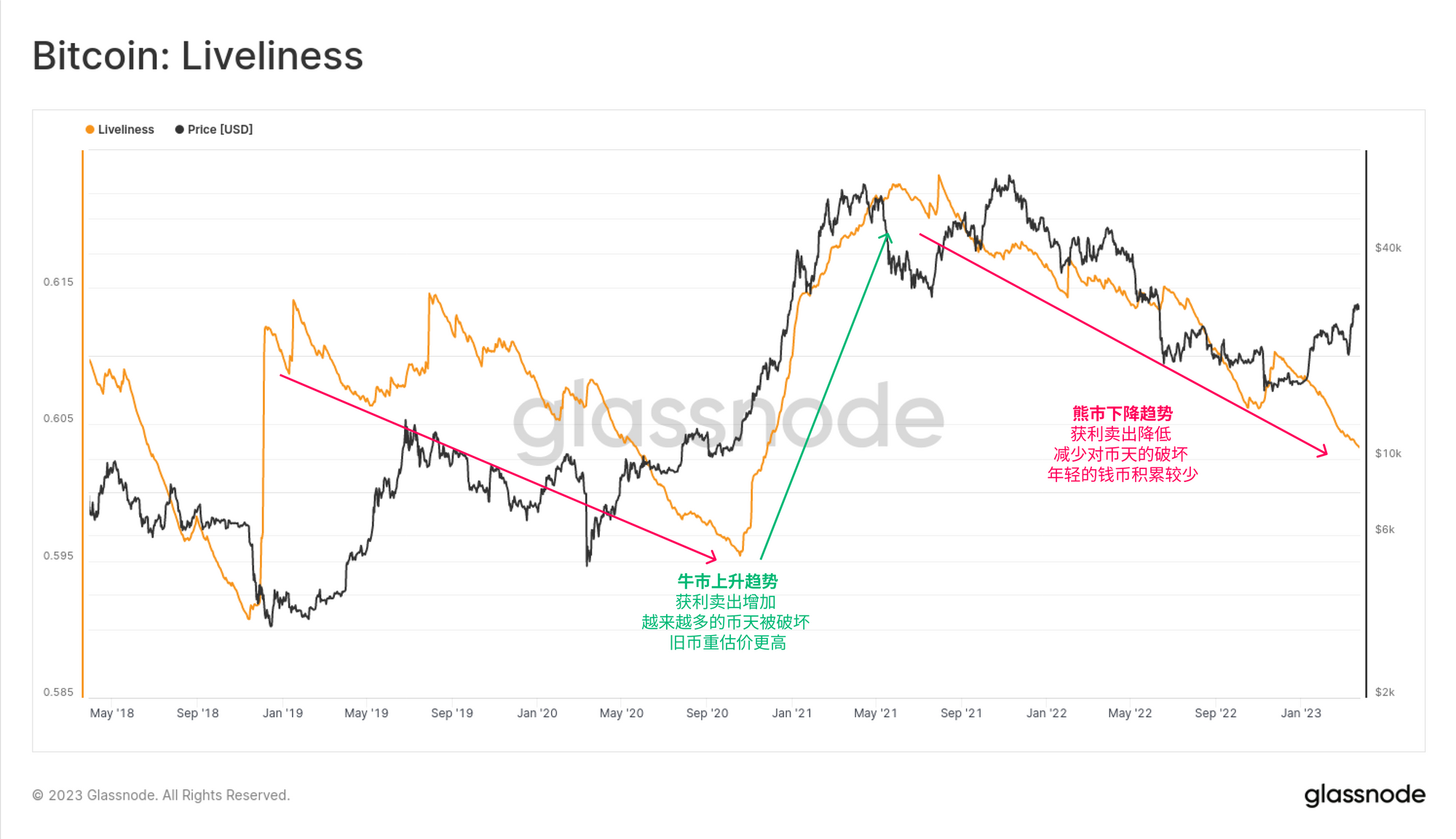 - 在熊市期间,长期投资者回到缓慢的积累策略,每天获得的利润较少。这最终建立了一个周期底。