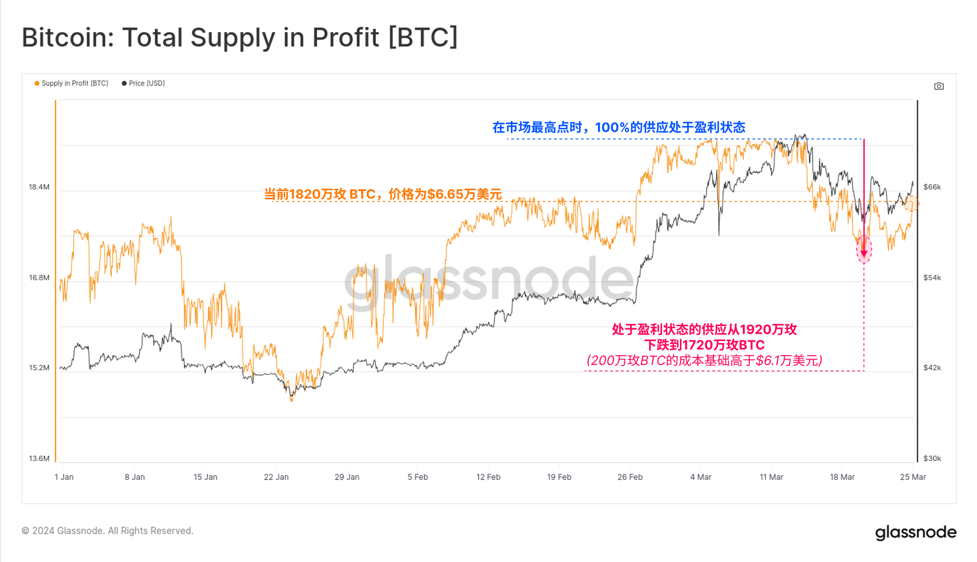 随着市场反弹到66,500美元,大约100万枚比特币币重新回到“盈利”状态。从这两个观察中,我们可以确定: