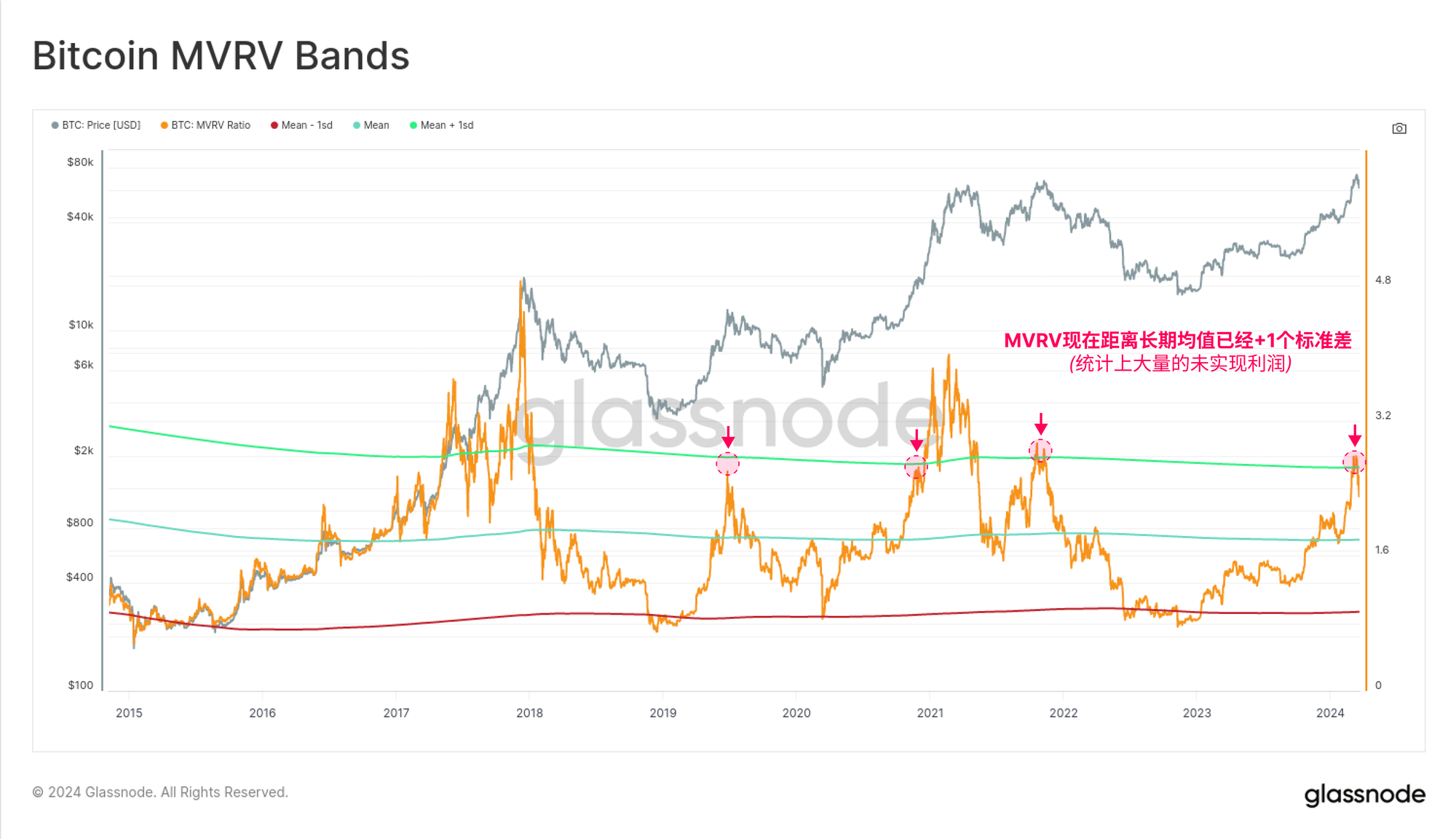 在 我们上周的视频报告中,我们探讨了比特币市场达到了关于供应中持有的未实现利润的几个统计学上的重要水平。像MVRV和AVIV比率这样的指标达到了其长期平均值+1个标准差的水平。