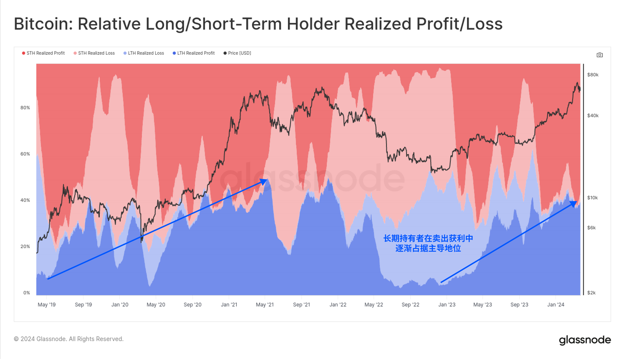这反映了一次财富转移事件,长期持有者卖出获利,满足新流入的需求波。