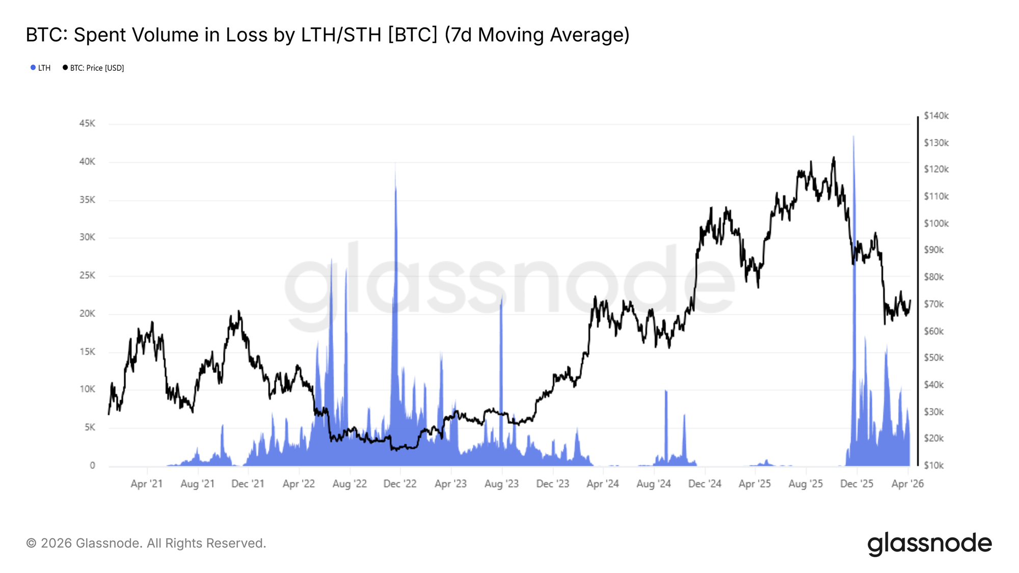 后者可通过指标:长期持有者已实现亏损量的7日简单移动平均(SMA)进行监测,自2025年11月以来,该指标一直维持在每日4000玫BTC以上,反映出高位买入者仍在持续出清其浮亏头寸。该指标若持续回落至每日<1000玫BTC以下,同时价格重新站上短期持有者成本基准(81,600美元),两者共同将构成最有力的链上信号,表明当前熊市阶段正在向牛市前的复苏结构转变。