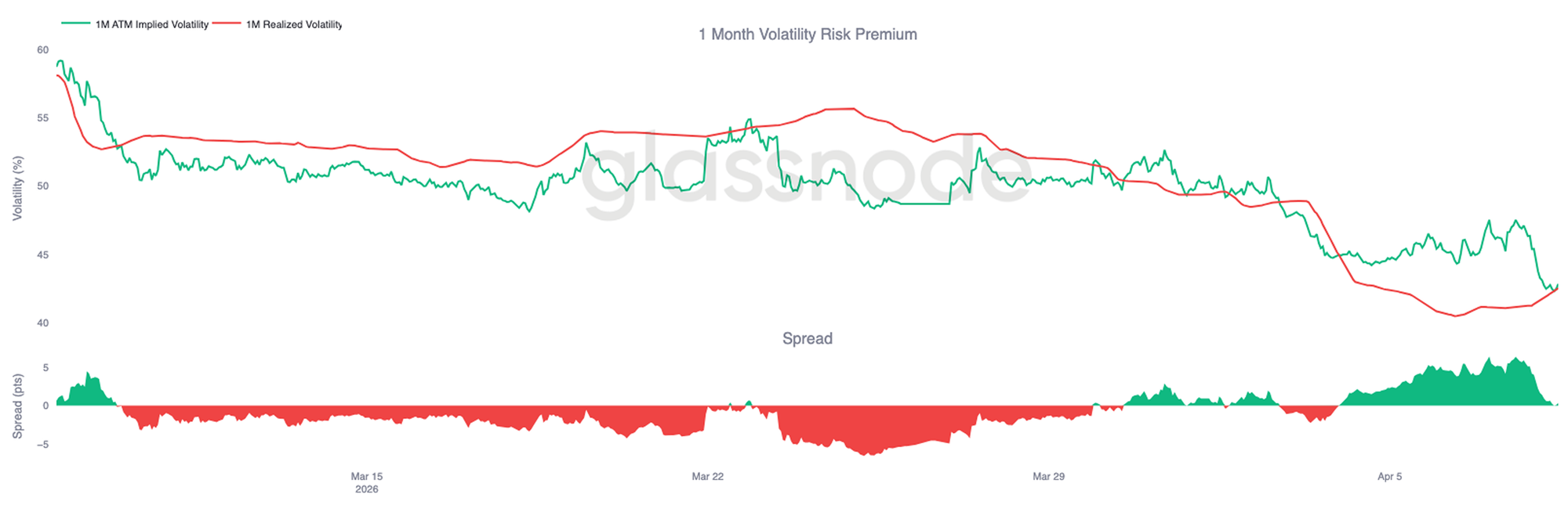 与其说这是市场走强的信号,不如说反映出一种参与度不足的状态,市场更多是在被动反应,而非主动引领。随着隐含波动率同步下行,1个月波动率风险溢价目前已接近零,这种结构在历史上通常为波动率买方提供较具吸引力的入场点。