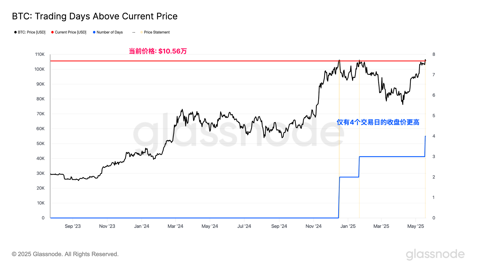 迄今为止,仅有4个交易日的比特币日收盘价高于此,而上周收盘价10.65万美元是历史最高水平。比特币在过去六周内的交易价格也上涨了约40%,突显出市场复苏的强劲程度。
