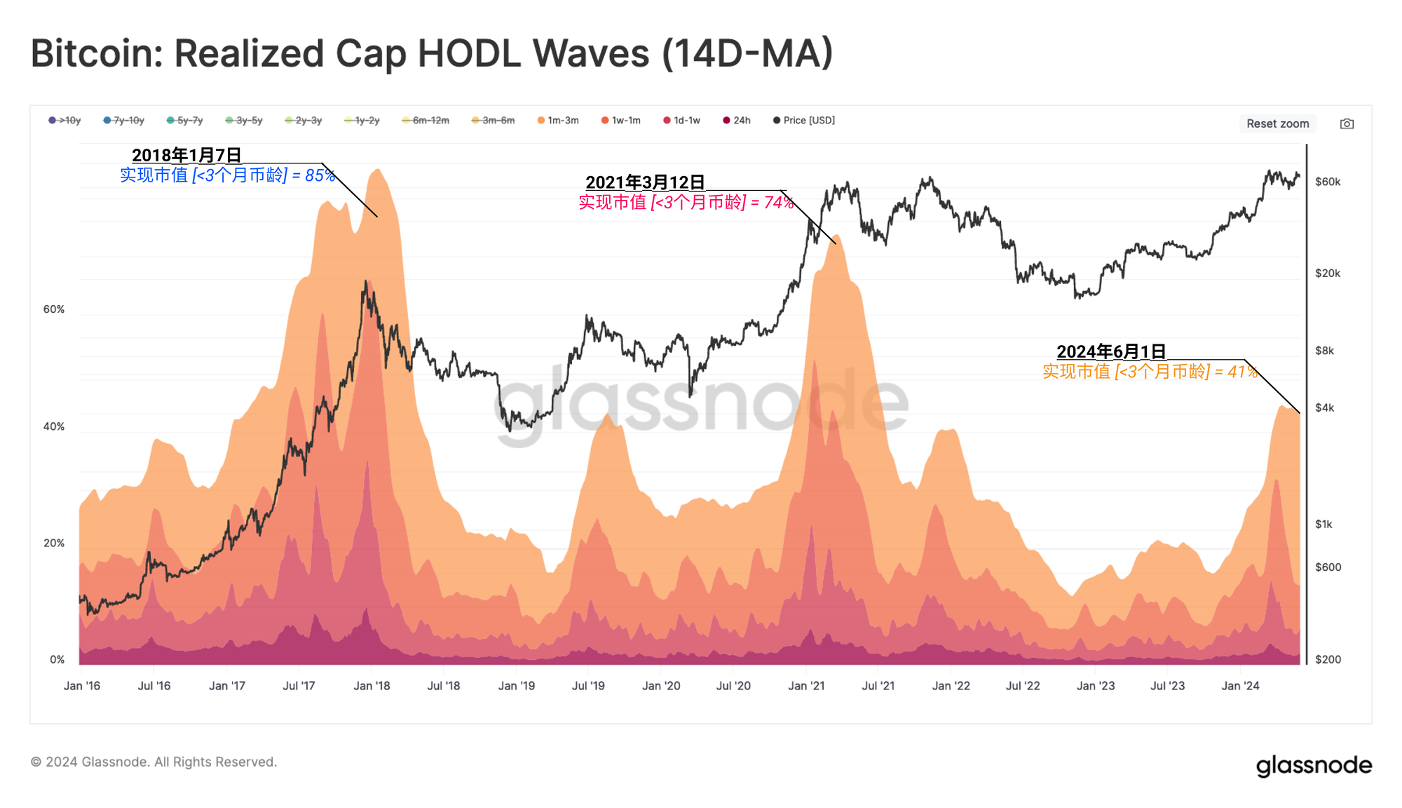这个群体目前占据了网络财富的41%,这表明财富分布正在向新需求转移。从周期的历史终端值来看,这种财富转移通常会达到70%以上的饱和度,这表明长期投资者花费和出售的供应量相对较小。