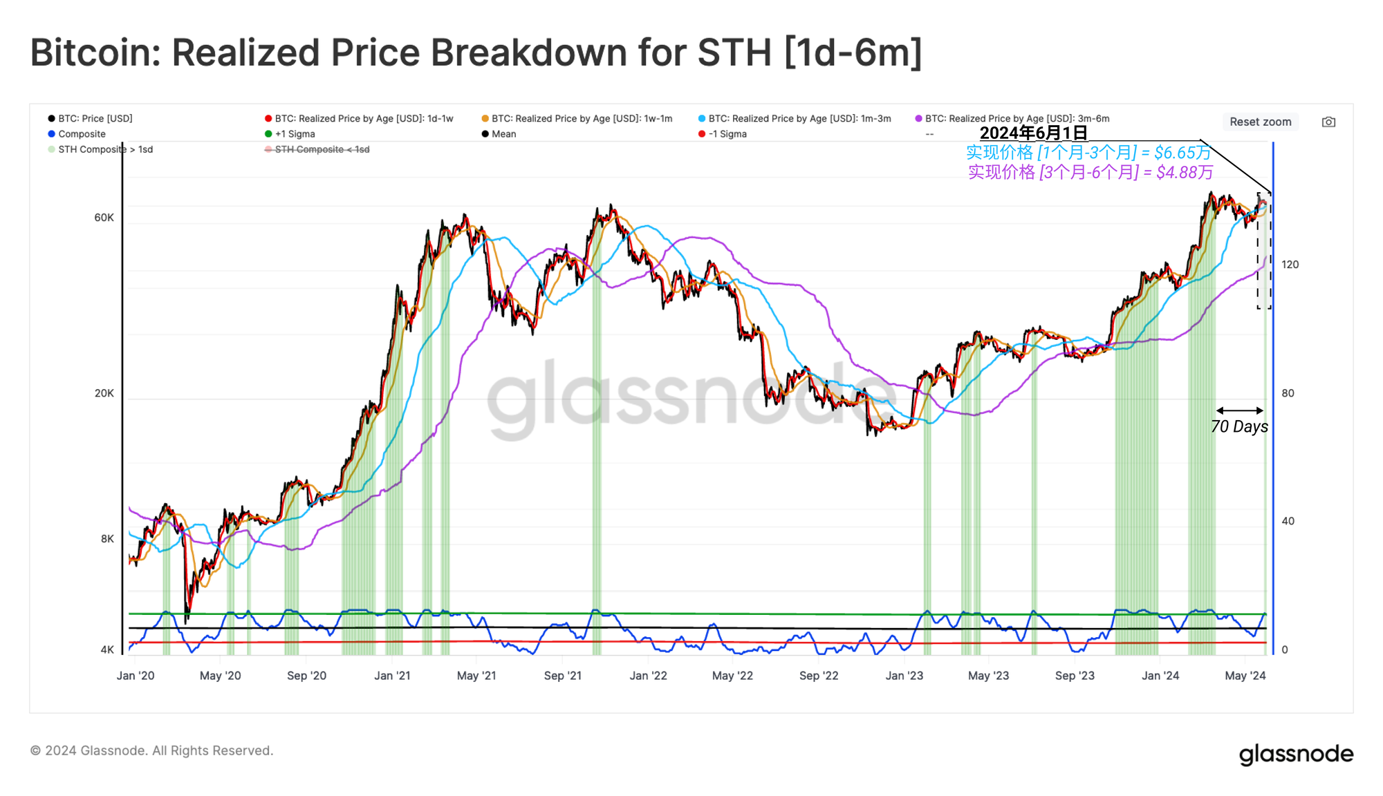 在当前现货价格附近积累了大量短期持有者的币。这表明在这个价格区域内进行了大量投资。然而,这引入了投资者对价格波动敏感性的风险。