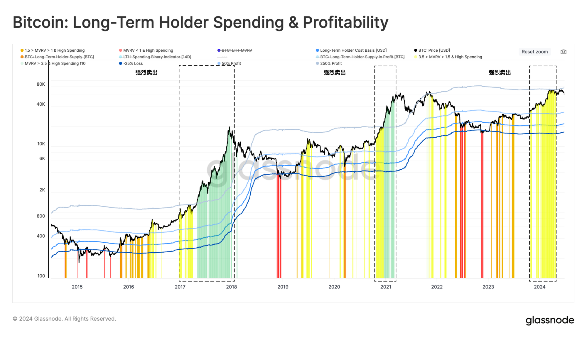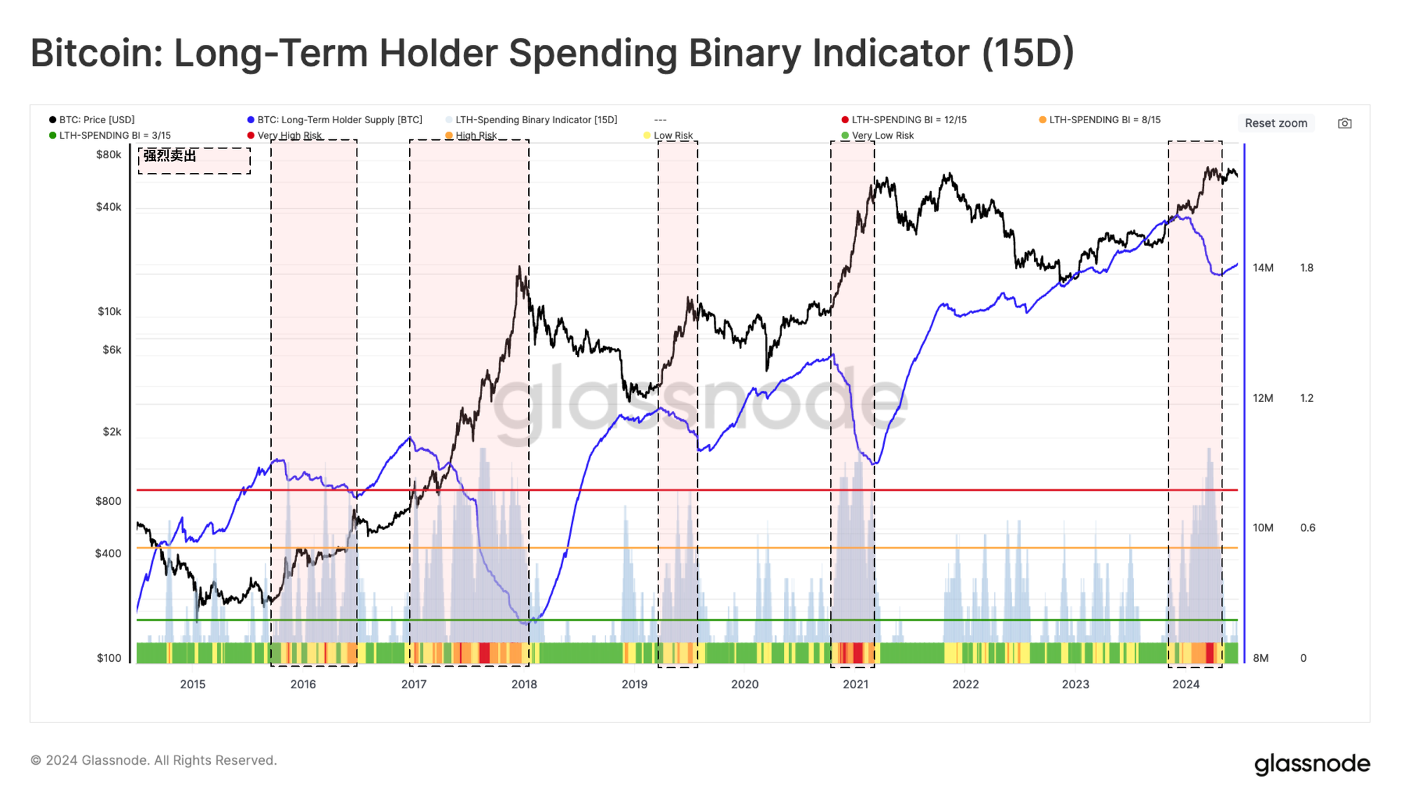 - 强劲支出🟥,即在过去15天内有超过12天LTH供应量下降。