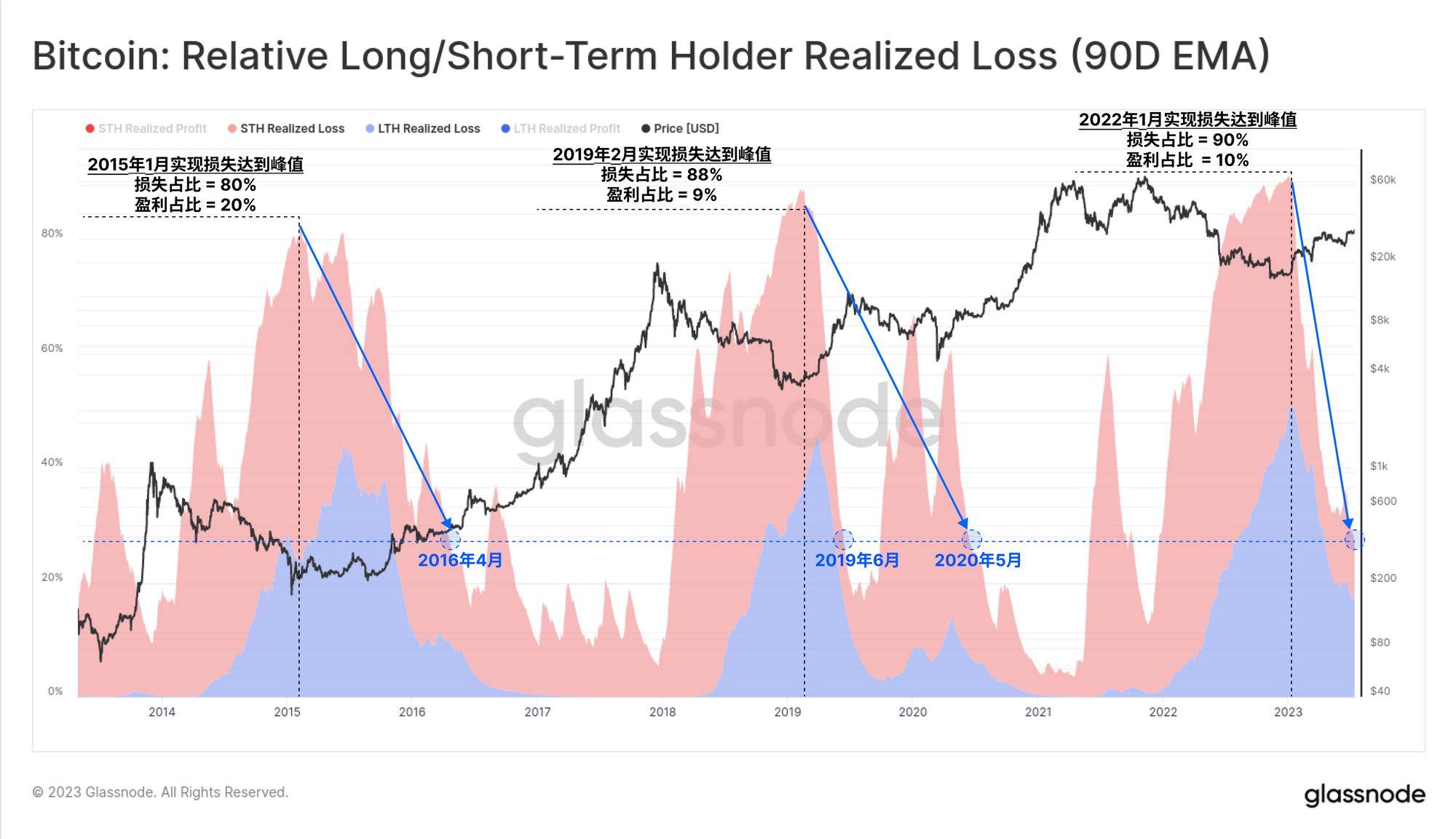 如果我们对市场锁定的已实现价值进行细分,我们可以看到2023年迄今为止的复苏情况。论是长线交易者还是短线交易者,目前都有绝大多数(73%)的人已经锁定了利润。