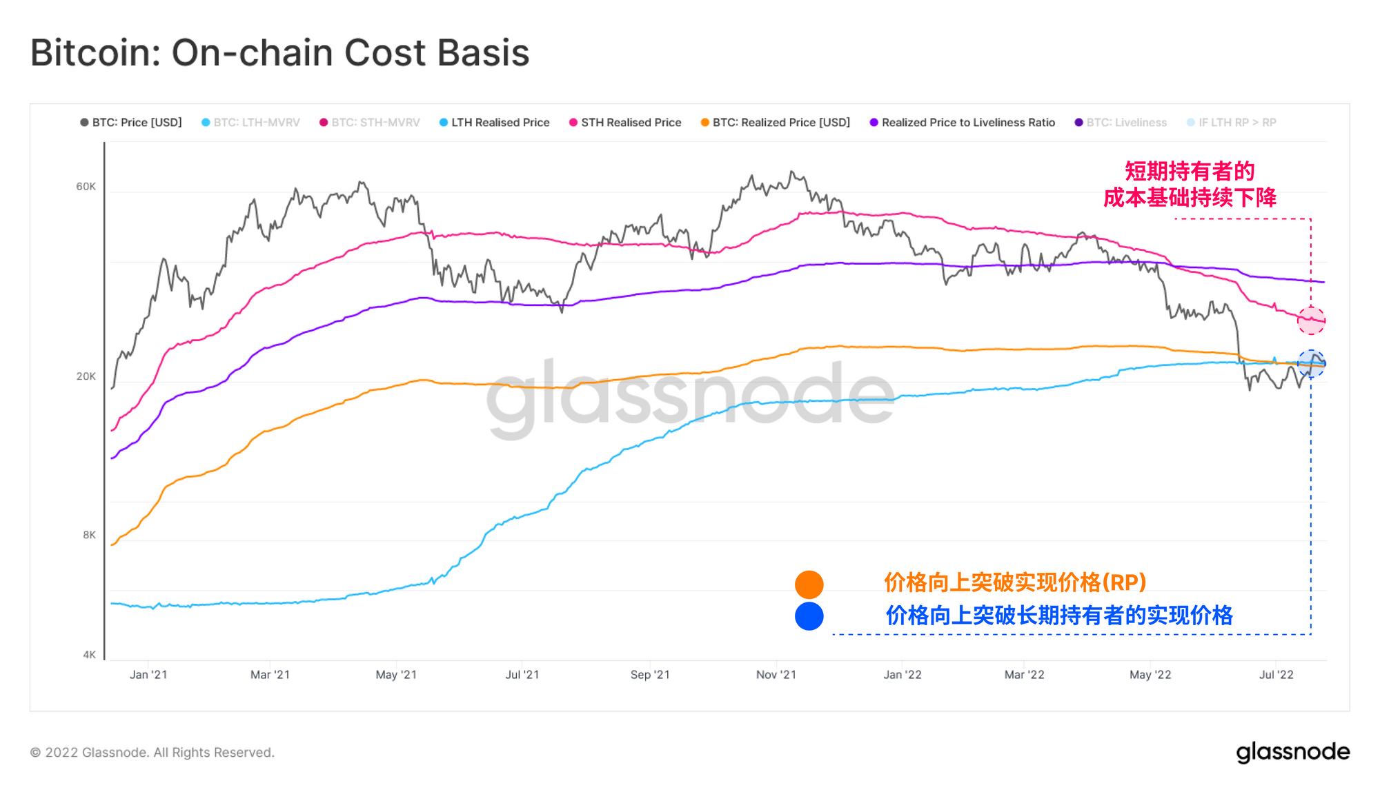 - 价格已经被突破,高于实现价格和长期持有者的实现价格,两者都在2.2万美元区域。两者之间的通道是一个有争议的兴趣点,是200周移动平均线的汇合点。