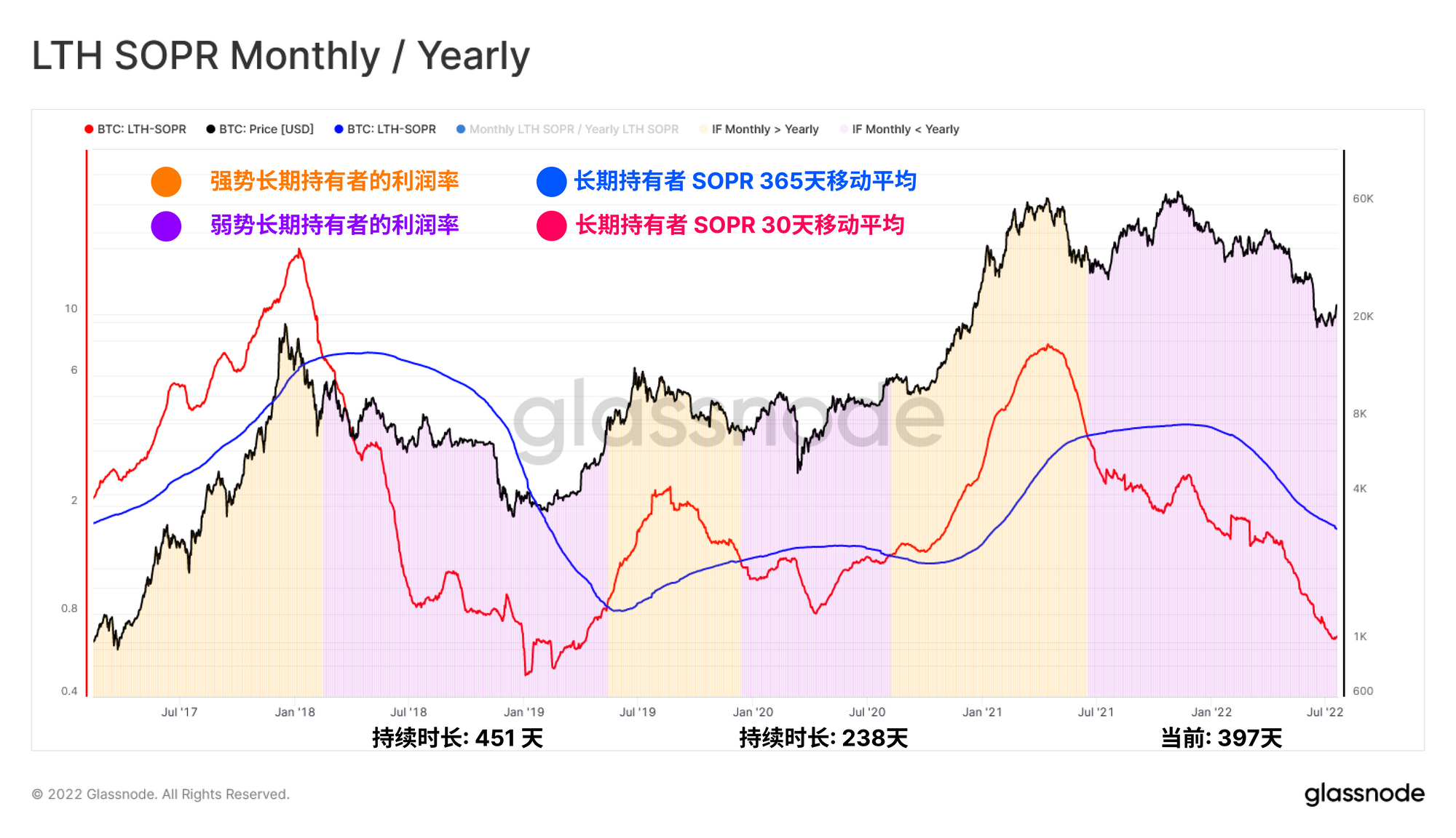 在目前的市场中,长期持有者最近的盈利能力已经连续近400天大大低于他们的年度表现。这种下跌的持续时间和深度与2018年熊市的低点相似,并为上述论点提供了更多的砝码。
