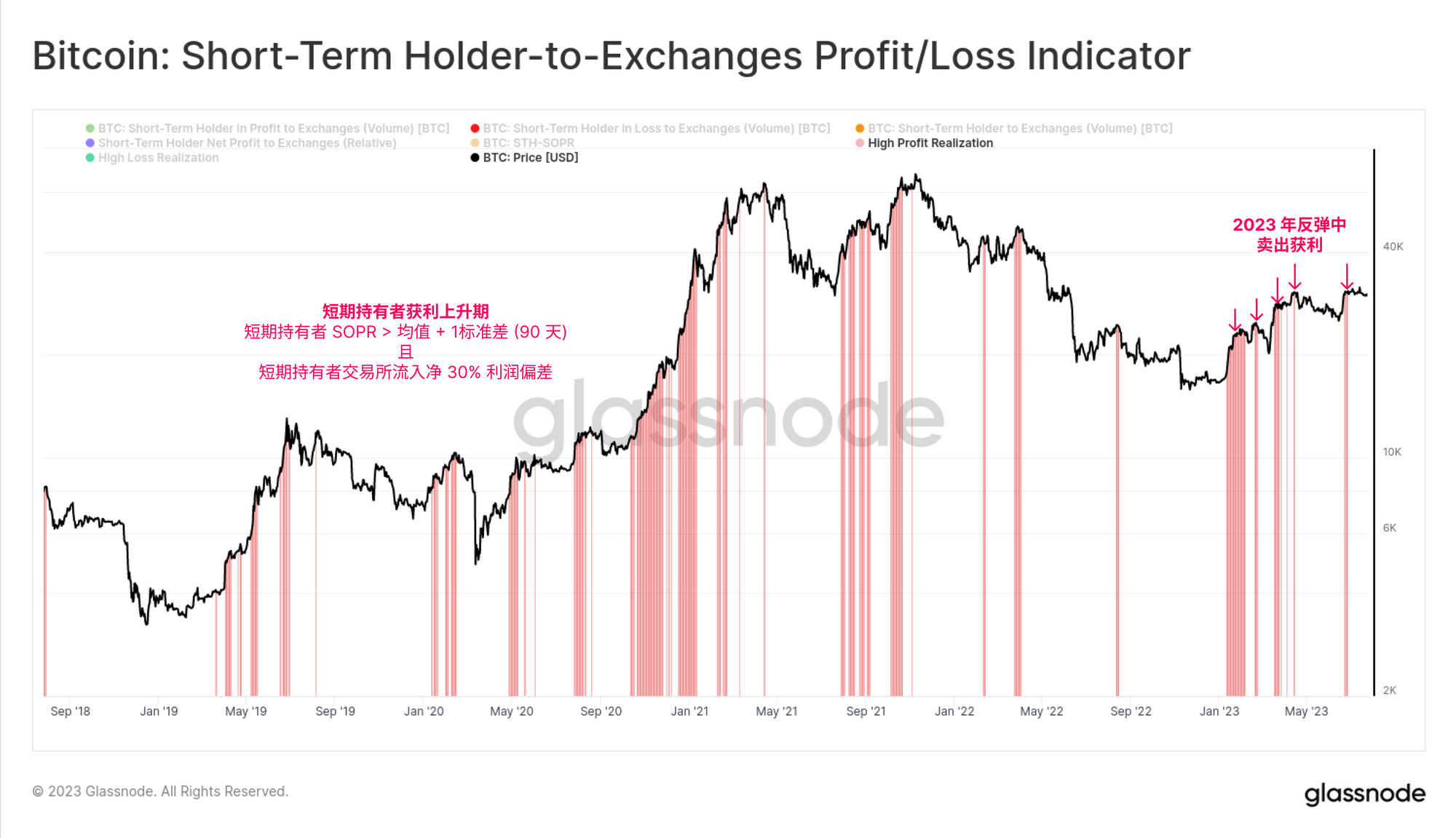 与近期历史相比,这一工具有助于识别 STH群体何时锁定大量利润。在整个2023年,已经发生了多次这样的事件,许多事件都创造了当地市场的高峰。