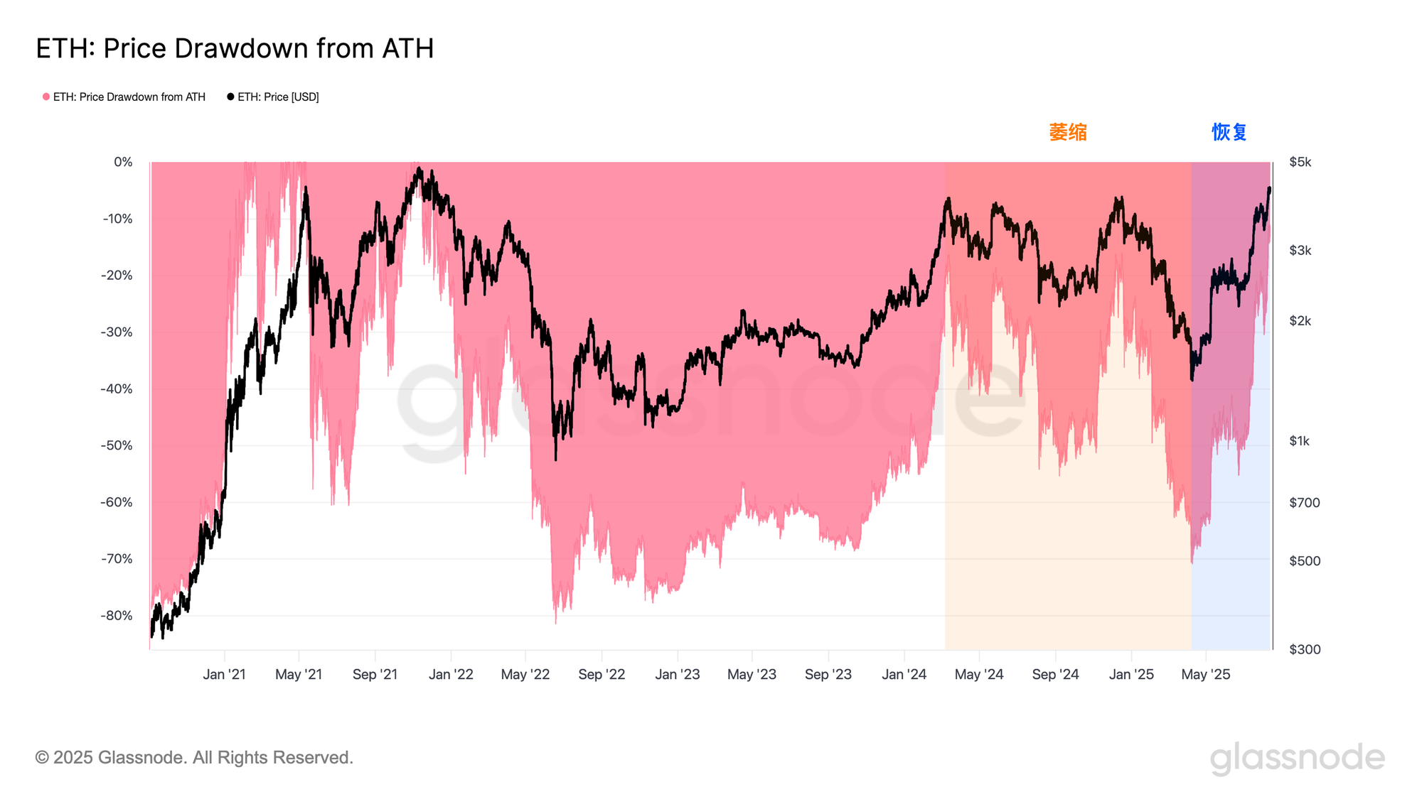 这一水平在历史上具有重要意义——它曾在2024年3月的反弹中成为顶部,也在2020至2021年牛市周期中多次充当阻力位。以太坊过去若突破这一区间,通常伴随着投资者情绪高涨以及市场结构的脆弱。