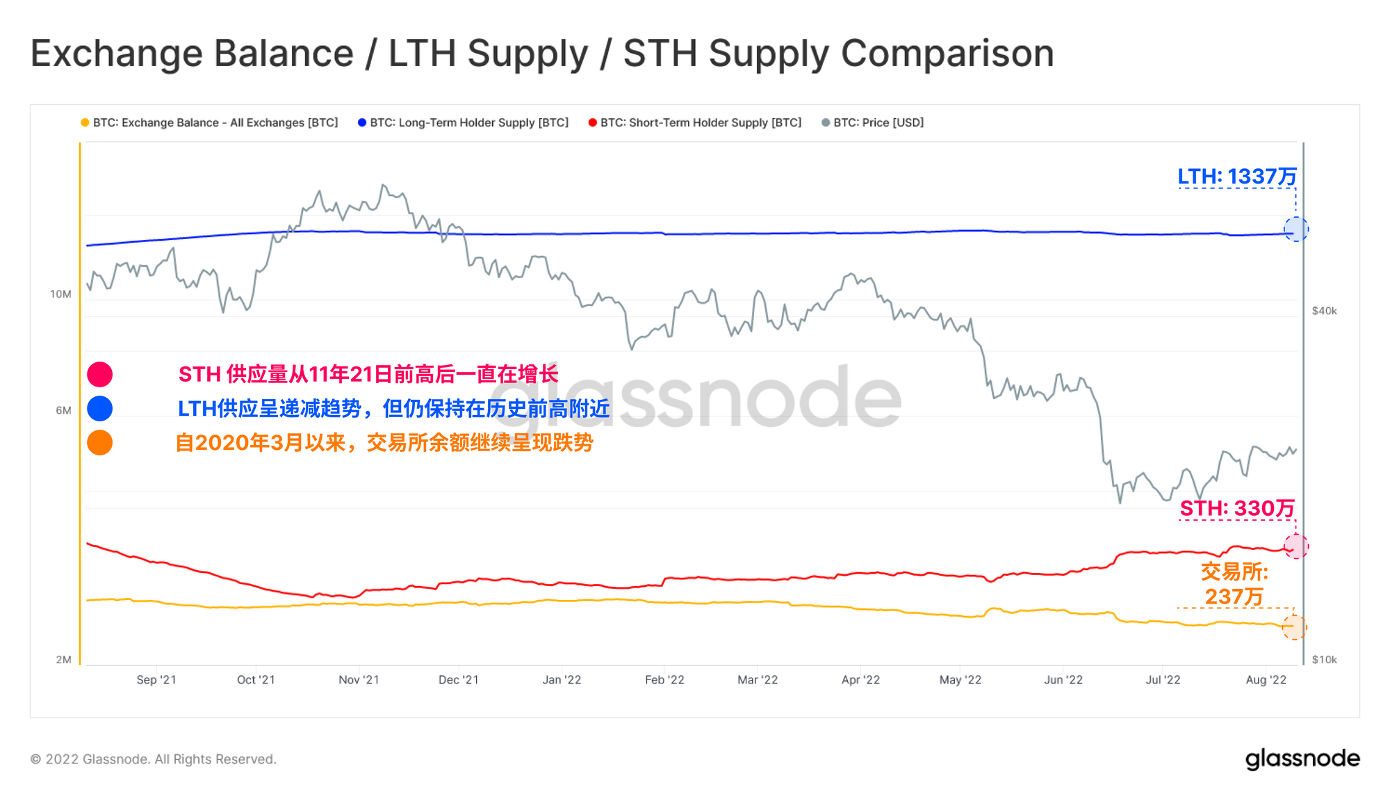 接下来,我们可以评估在交易所之外持有的其他两个部分,即长期和短期持有人的供应。
