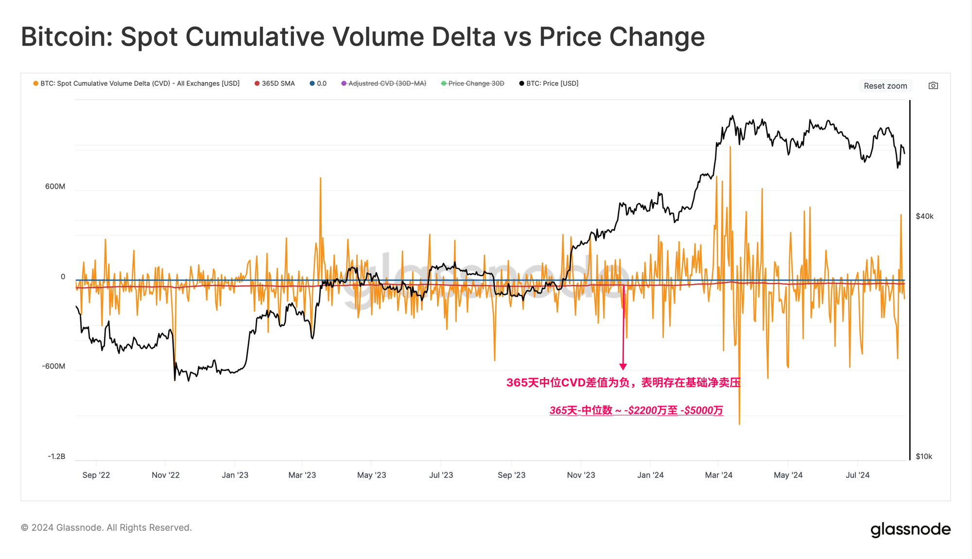 当我们分析现货CVD的年度中位值时,可以看到过去两年中,中位值在-$2200万和-$5000万之间波动,表明存在净卖方偏向。