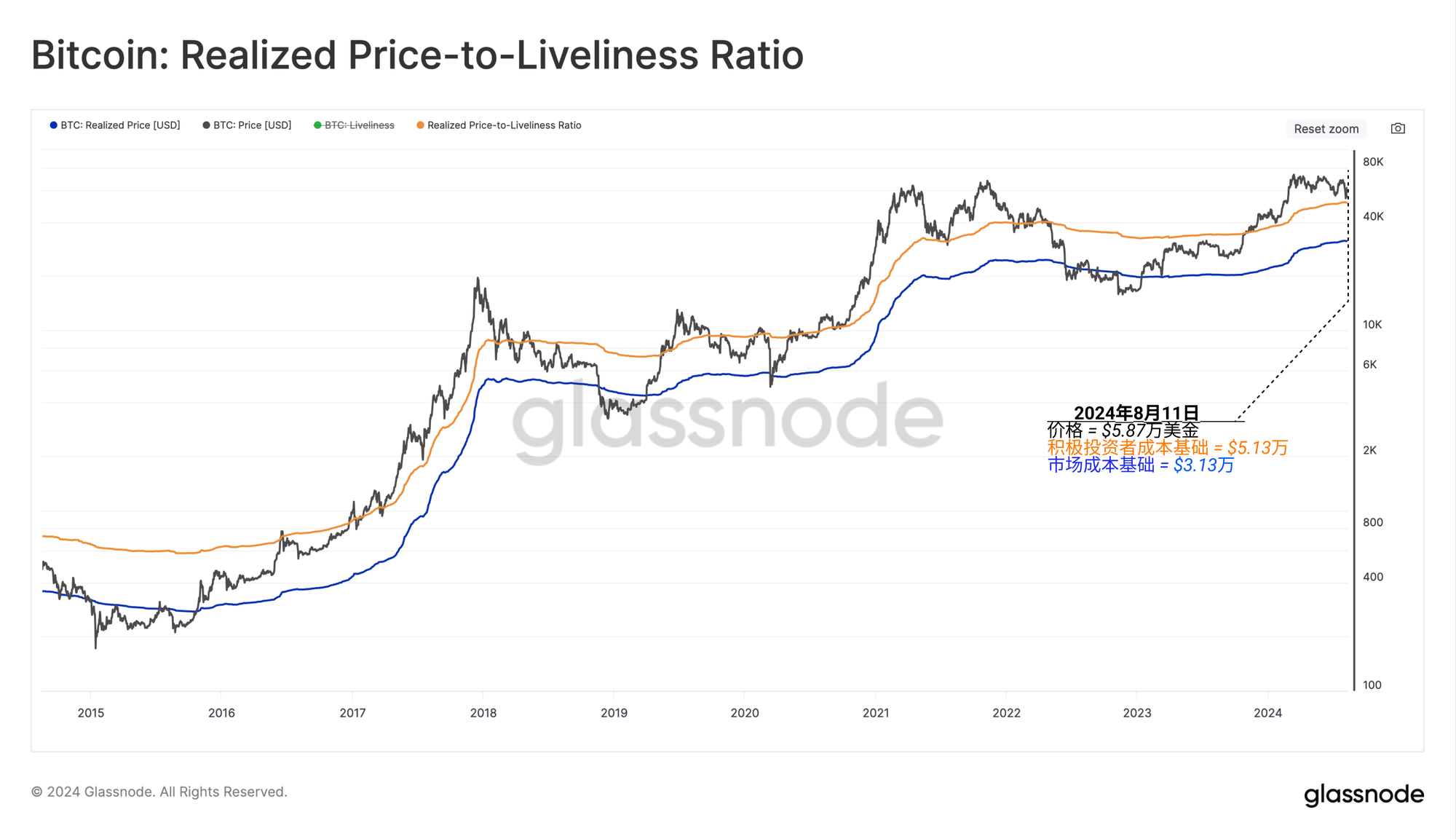 活跃投资者的成本基础可以被视为区分看涨和看跌投资者情绪的关键阈值。