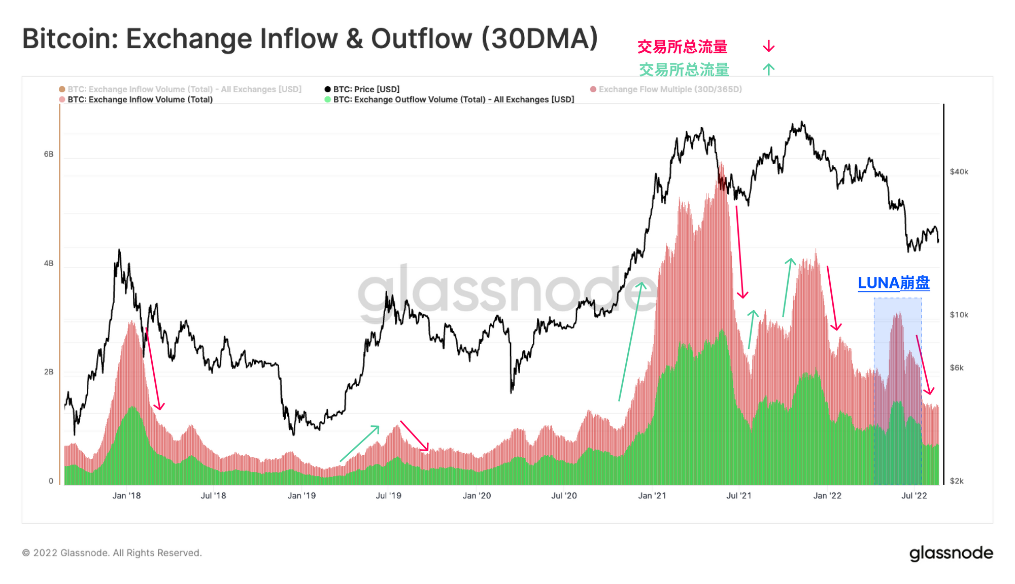 交易所流量的定义是与所有交易所相关的以美元计价的流入和流出量的平均值(即流入量+流出量除以2)。