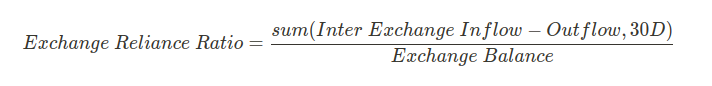 第一个指标考虑的是交易所集群内部交易量与相关资产总余额储备的比率。该值的范围设置在0至1之间,以便在不同交易所和资产之间进行比较。