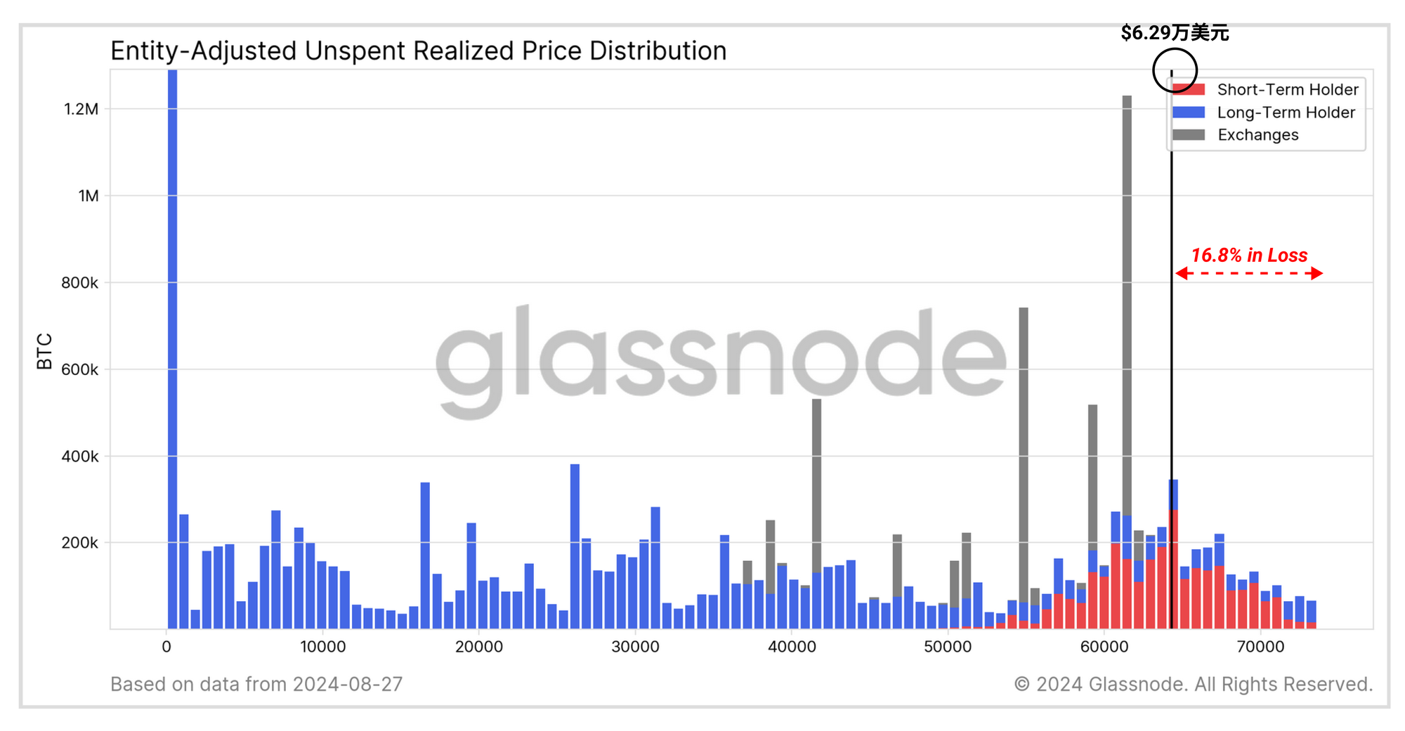 这也意味着这些长期持有者的币目前处于未实现亏损状态。