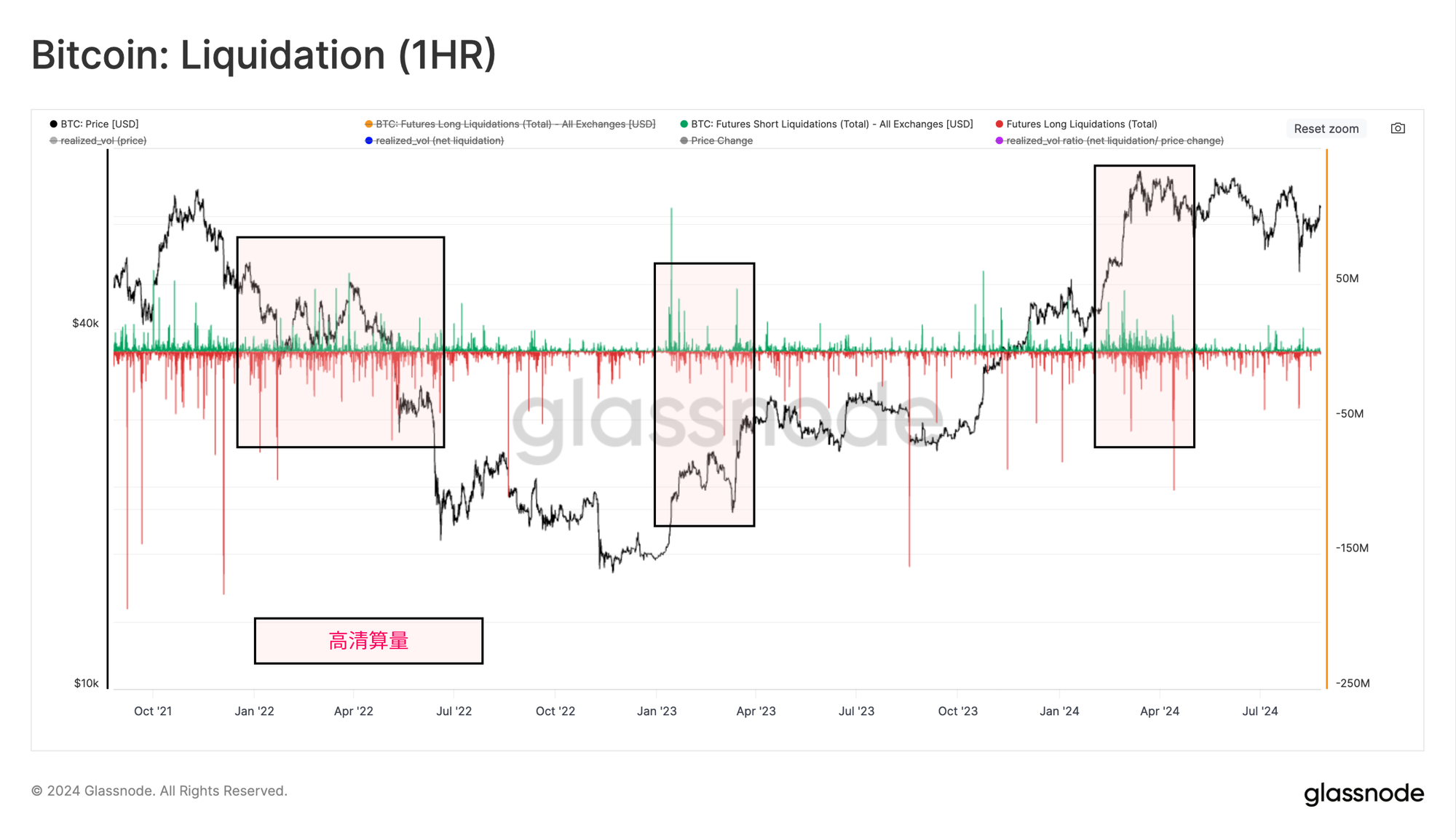 总体而言,最近几个月清算量显著下降,尤其是相对于3月份历史高点的兴奋期。这表明投机兴趣下降,表明当前市场以现货为主导的趋势。