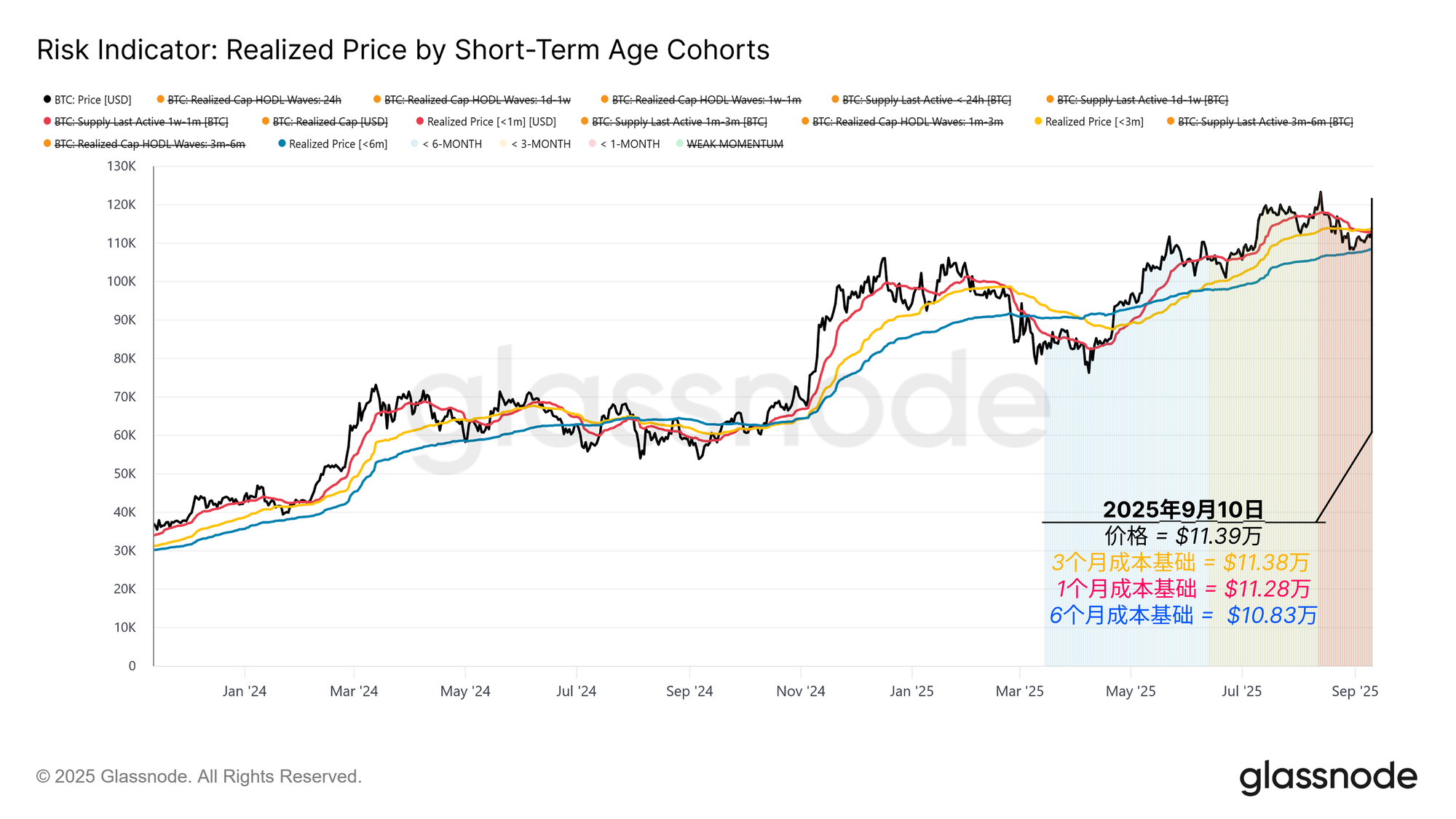 - 过去一个月的逢低买入者,聚集在约 11.28 万美元附近。